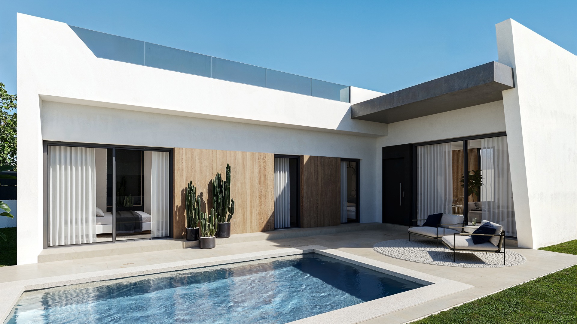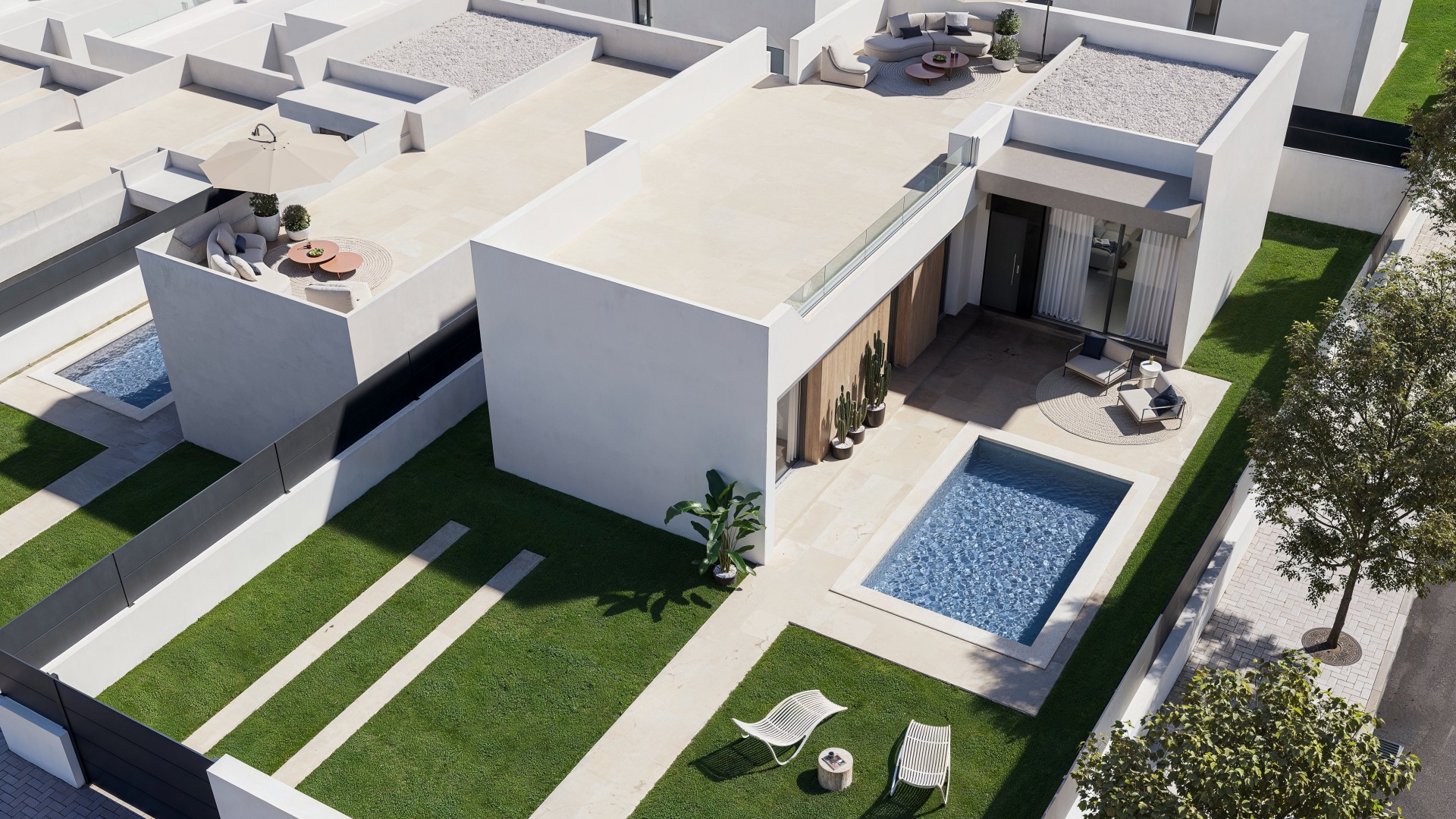 Presentamos un moderno complejo residencial compuesto por 48 exclusivas viviendas adosadas de alto nivel, ubicado en una zona tranquila y muy demandada de San Miguel de Salinas. El proyecto ofrece viviendas con 3 dormitorios 2 baños y solárium privado, diseñadas para disfrutar de una vida cómoda bajo el sol mediterráneo La arquitectura combina un elegante estilo contemporáneo con distribuciones funcionales y una cuidada atención al detalle. En su construcción se emplean materiales de alta calidad que garantizan durabilidad estética y confort.