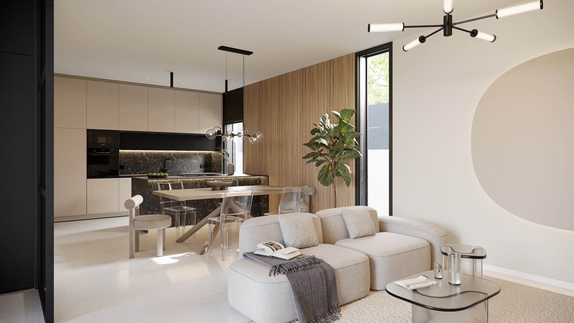 Cada vivienda dispone de puerta de entrada de acero Thermo46 modelo 010, cocina totalmente equipada con muebles altos y bajos encimera porcelánica e isla central con placa de inducción y sistema de extracción integrada. Los baños incluyen mobiliario y la vivienda cuenta con sistema de aerotermia para agua caliente sanitaria con termo eléctrico de 150 litros así como preinstalación de aire acondicionado por conductos en dormitorios y salón-comedor. Las persianas son motorizadas y se incluye videoportero. El solárium dispone de tomas de corriente agua y antena de televisión. Cada parcela está cerrada perimetralmente mediante muro y valla metálica proporcionando privacidad y seguridad.