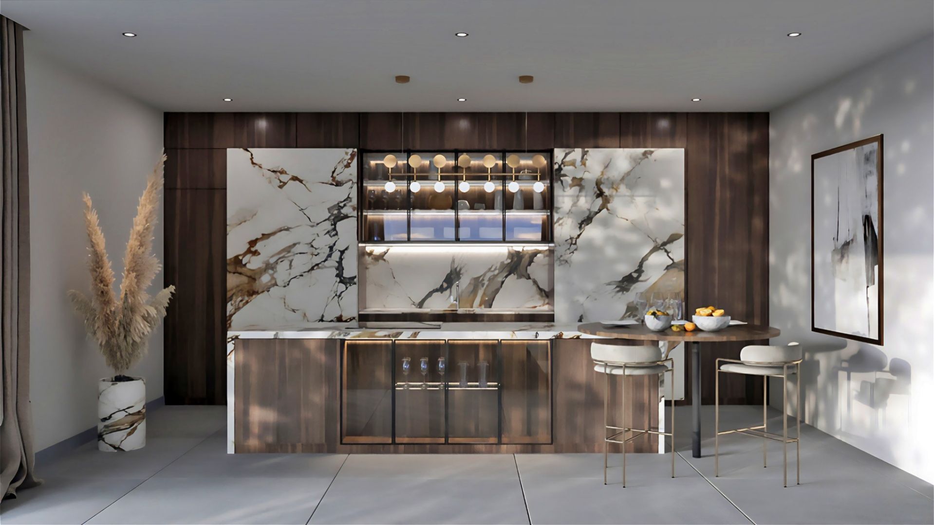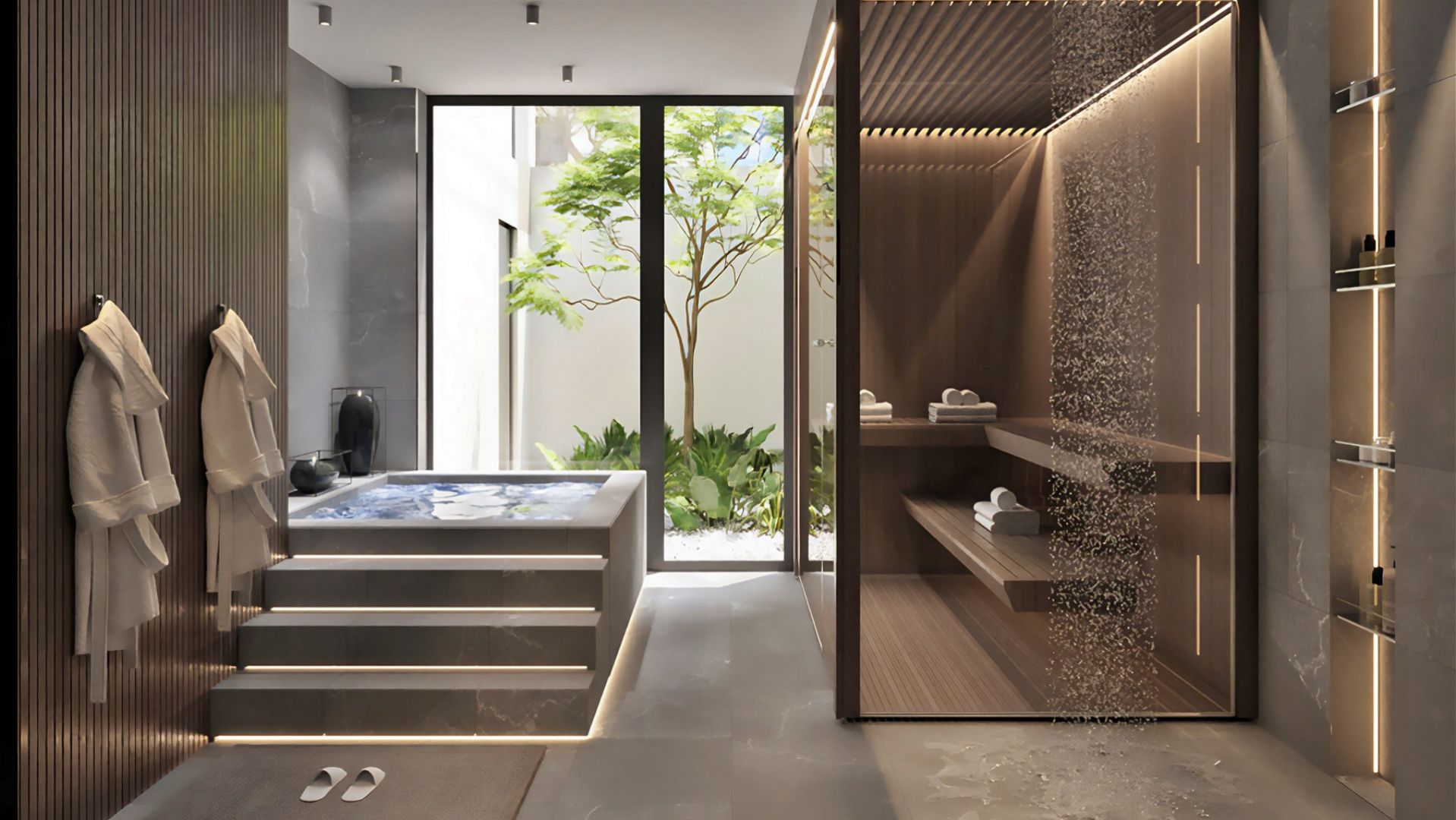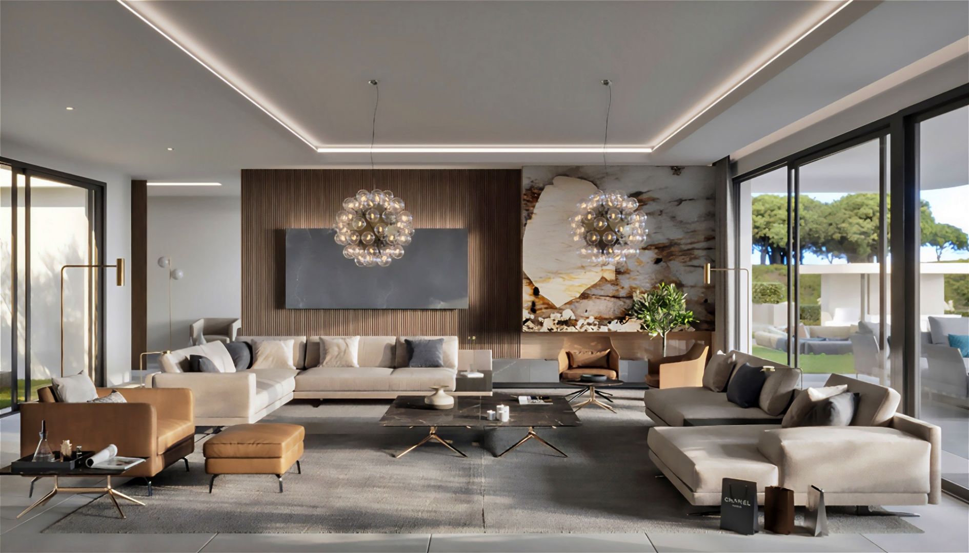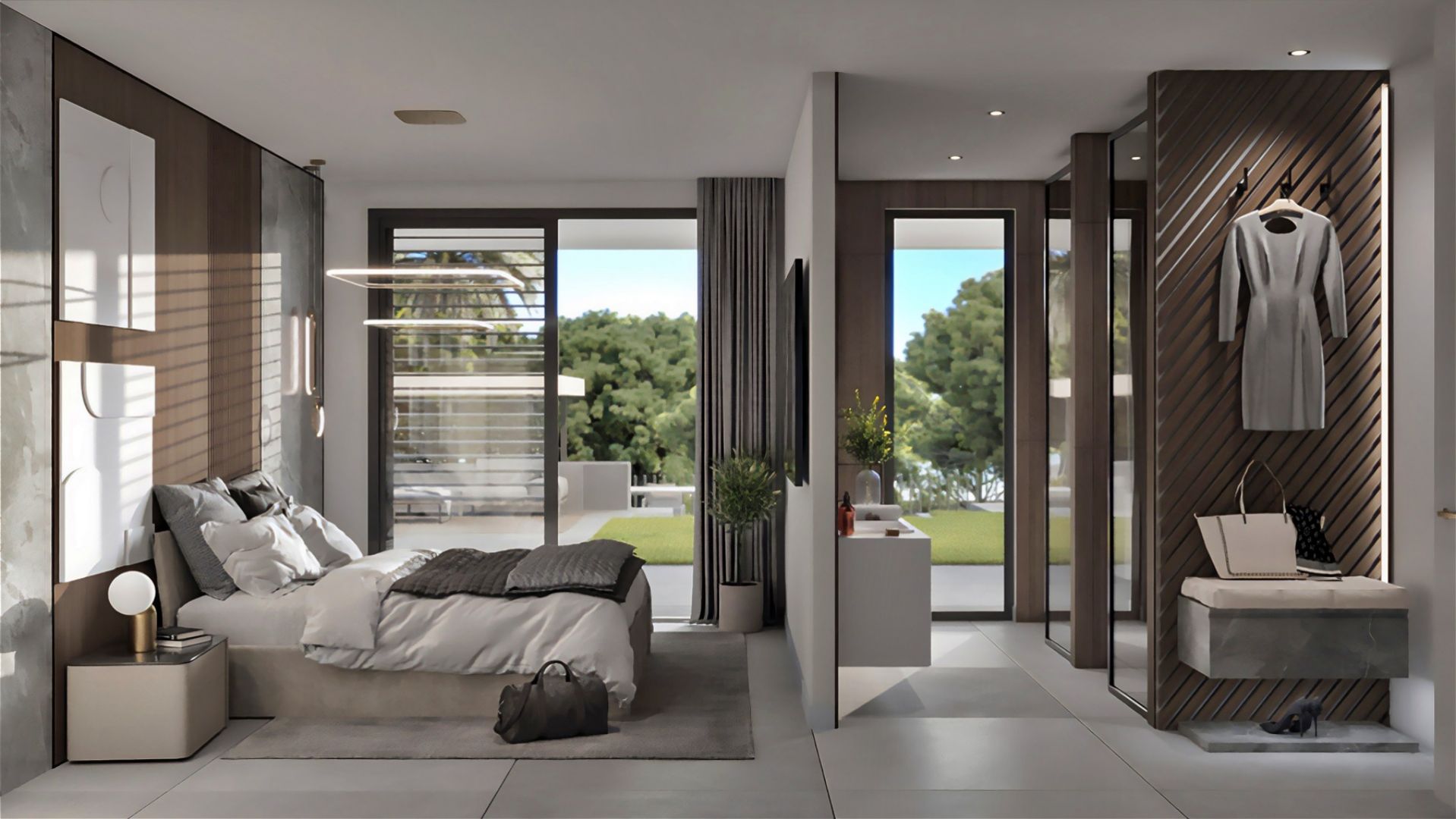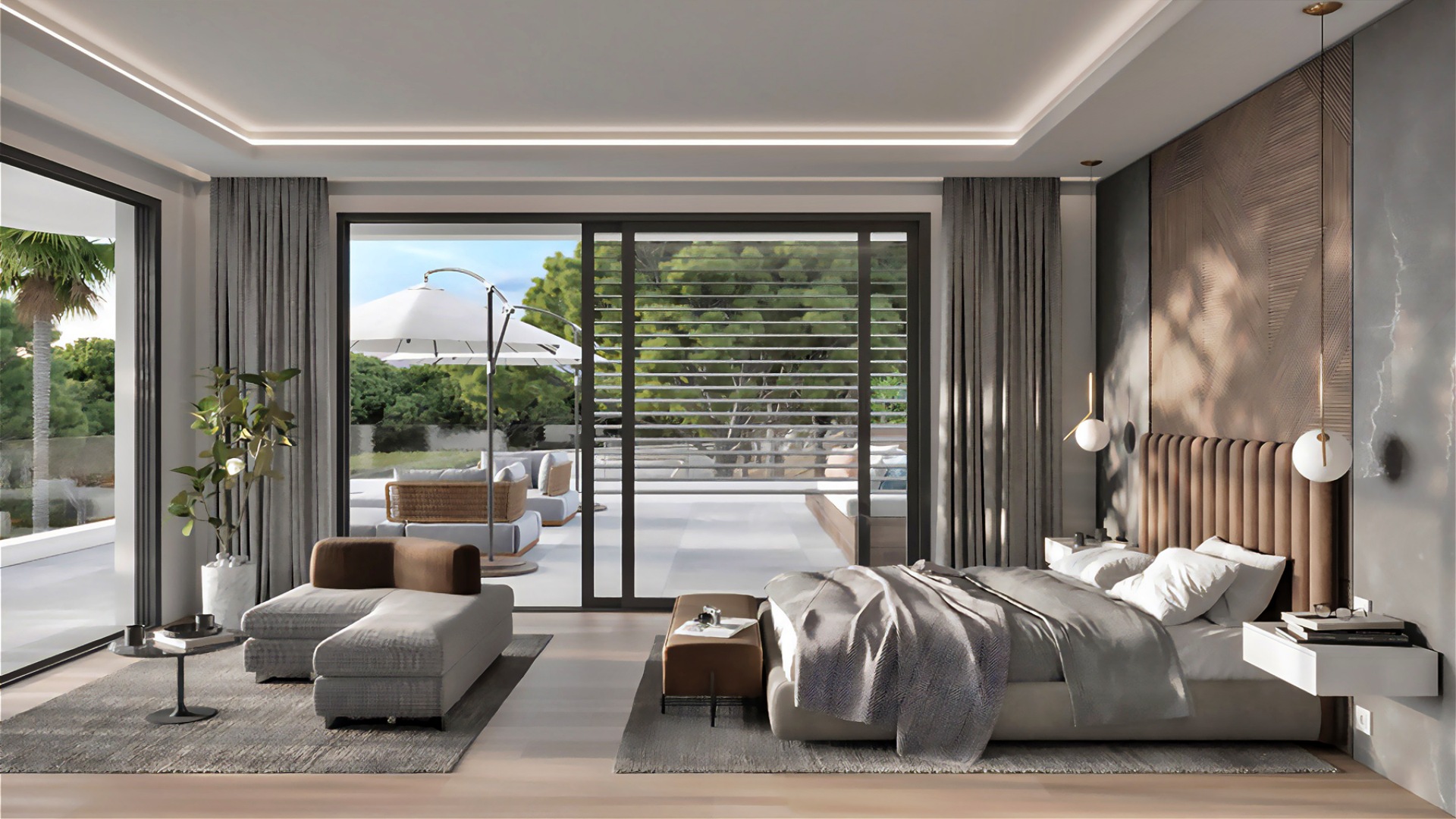 La villa dispone de 4 amplias habitaciones y 5 elegantes baños, donde cada espacio ha sido cuidadosamente diseñado para combinar funcionalidad, confort y estética contemporánea. Los interiores destacan por sus grandes ventanales, que integran perfectamente los espacios interiores con el exterior, inundando la vivienda de luz natural y creando una atmósfera serena y sofisticada, reforzada por una cuidada iluminación LED.