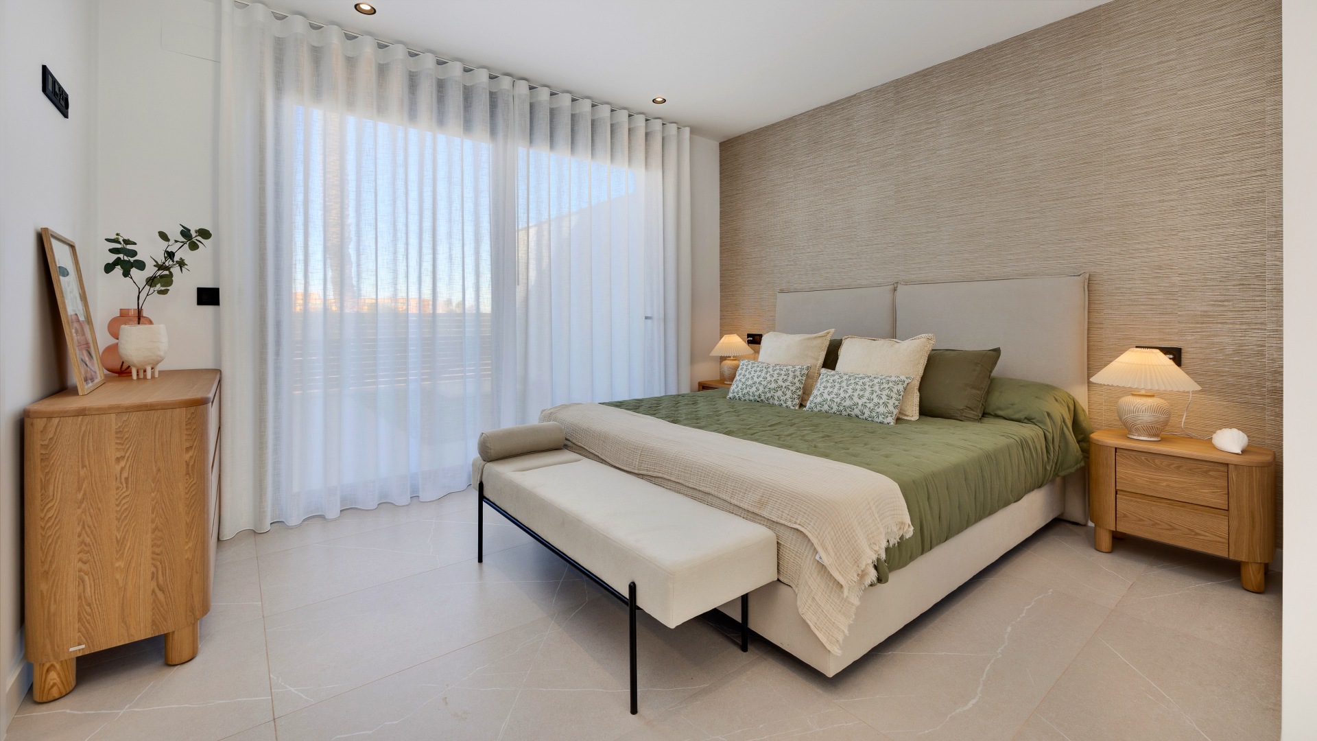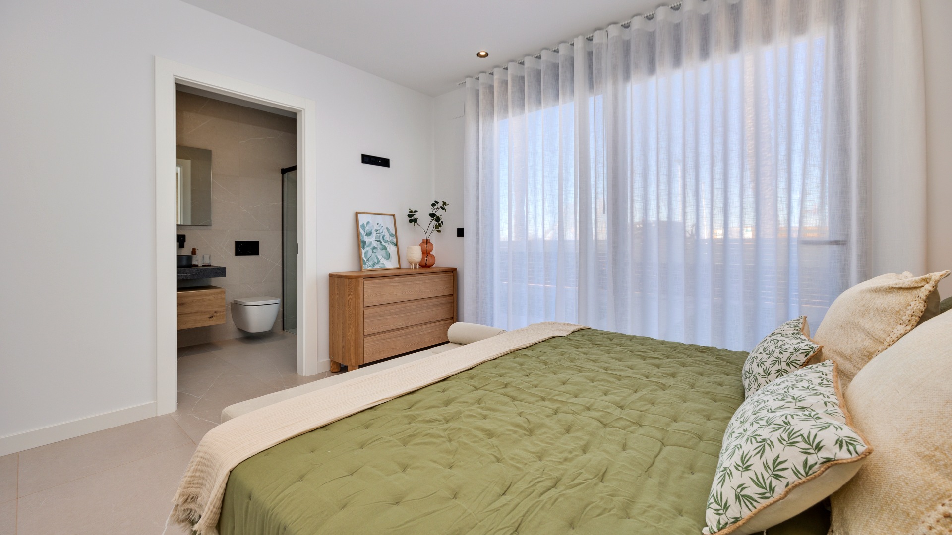 La ubicación es estratégica: cerca de playas, centros comerciales, colegios, servicios médicos y campos de golf, con excelente conexión por carretera y a aproximadamente 45 minutos del aeropuerto de Alicante.