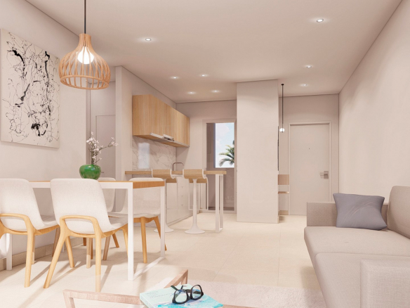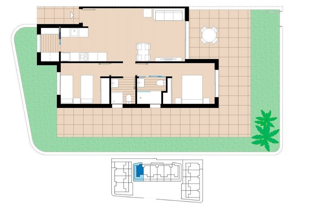La propiedad de 65.63 m2 consta de 2 dormitorios y 2 baños, un amplio salón, una cocina abierta, una terraza de 45.20 m2 y un jardín privado de 51.95 m2.