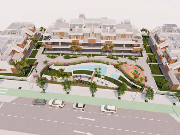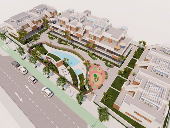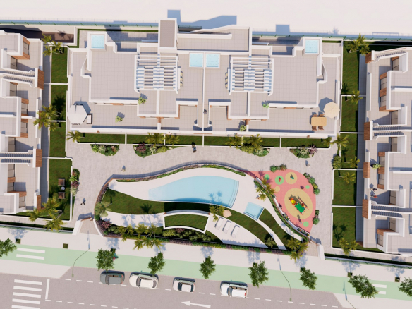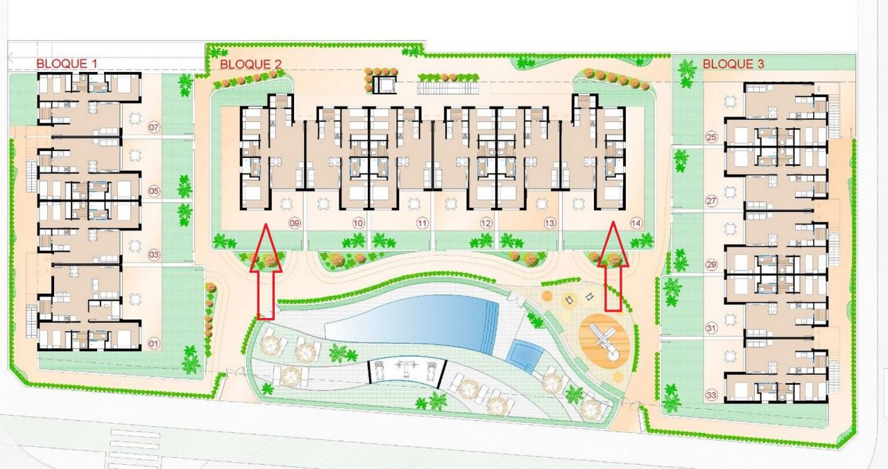El complejo dispone de piscina comunitaria, jacuzzi, gimnasio, parque infantil y garaje con trastero.