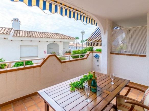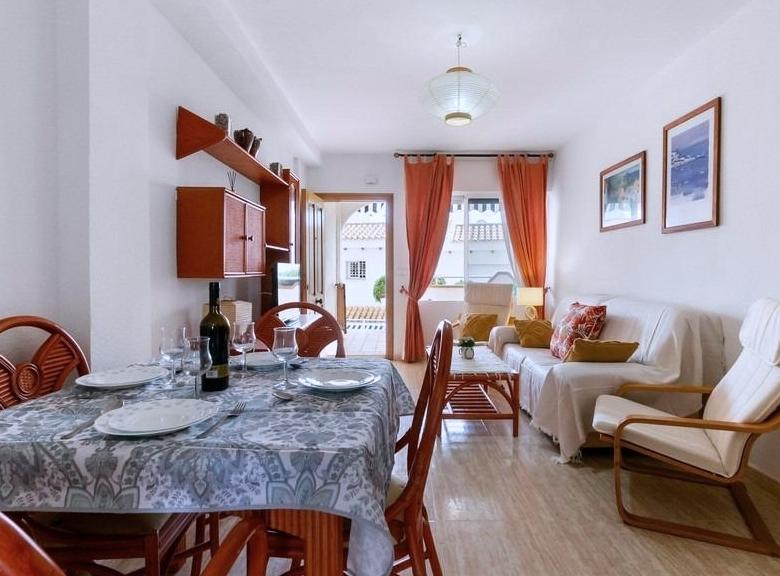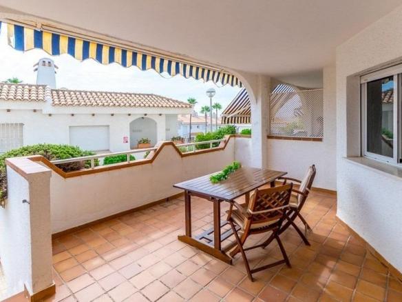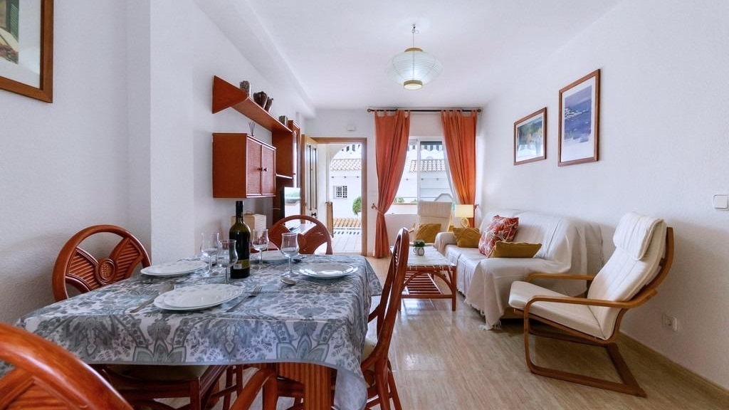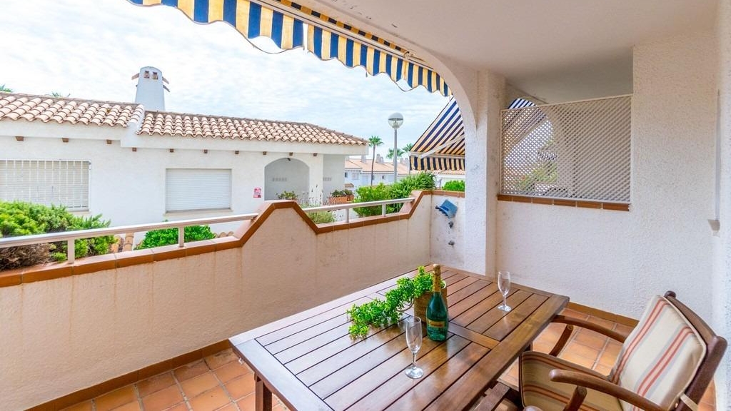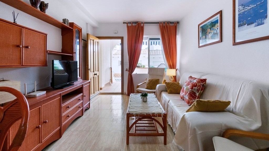 En uno de los complejos más cuidados y agradables de la costa —Residencial Aguamarina, donde las fachadas blancas típicamente mediterráneas se combinan con amplias zonas verdes y una atmósfera de calma, luz y mar— se pone a la venta un precioso apartamento en planta baja, ideal tanto para vacaciones como para vivir todo el año.