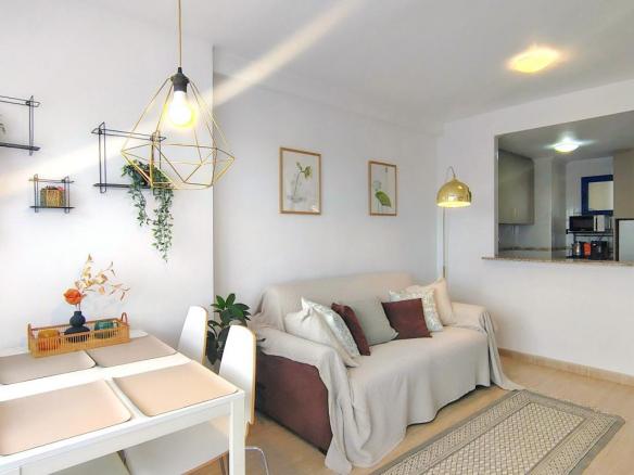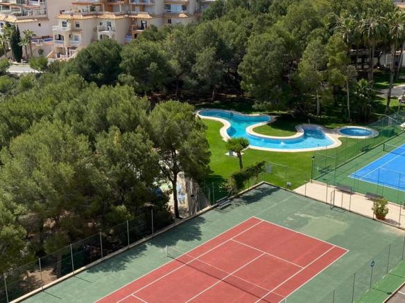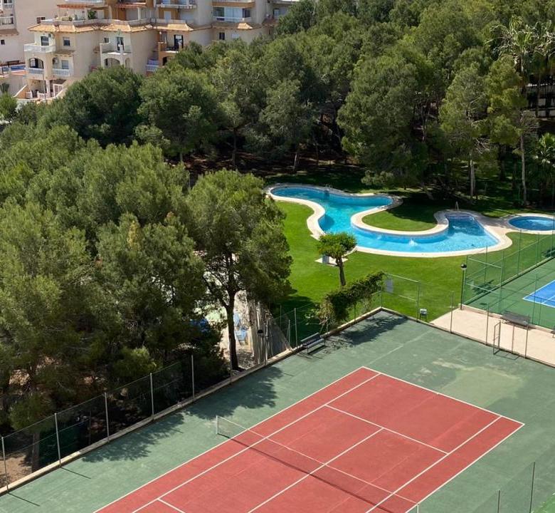 Este acogedor apartamento cuenta con una amplia terraza con vistas abiertas al mar y está ubicado en el exclusivo complejo residencial Los Altos de Campoamor, que ofrece piscina comunitaria, zona de barbacoa, área infantil, pistas de tenis y aparcamiento