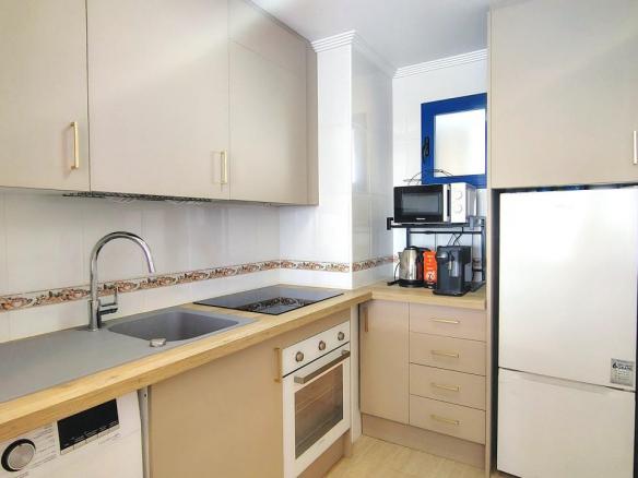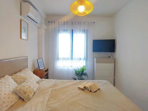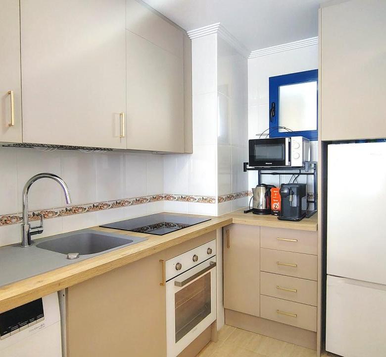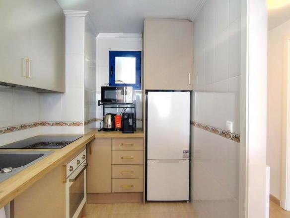 La vivienda se distribuye en un dormitorio, un baño completo, salón, cocina y una terraza con bonitas vistas al mar. Está completamente equipada con televisión, ropa de cama, toallas, vajilla y cubertería