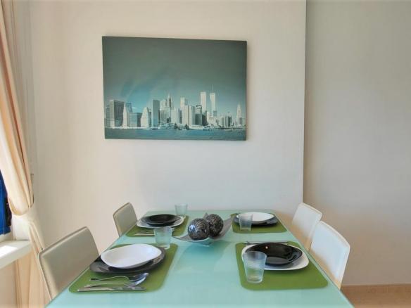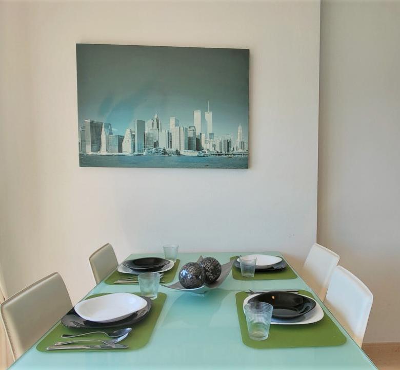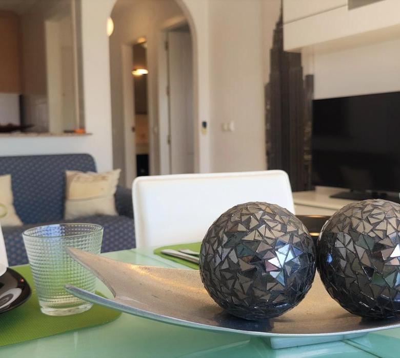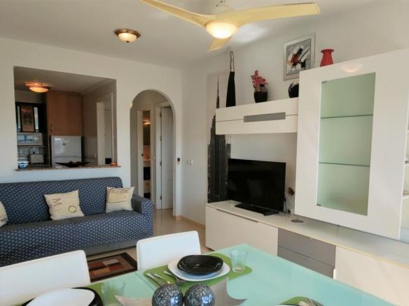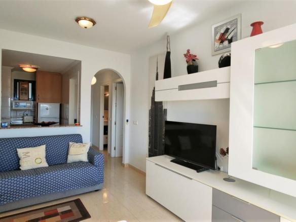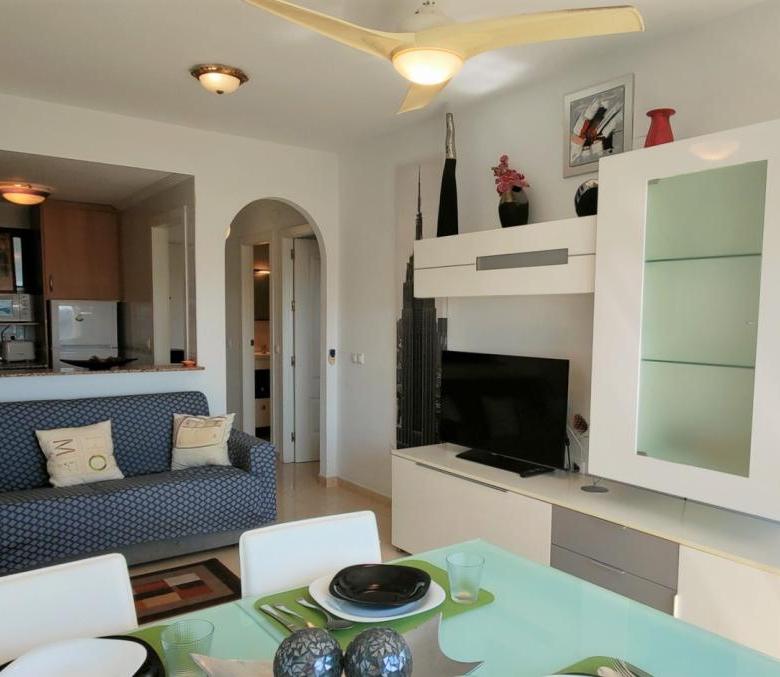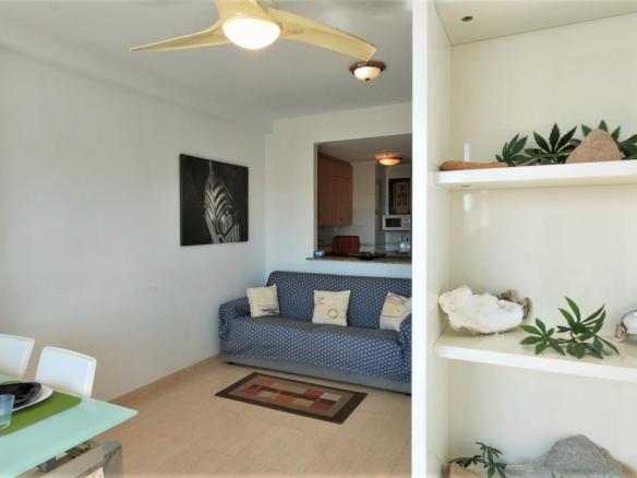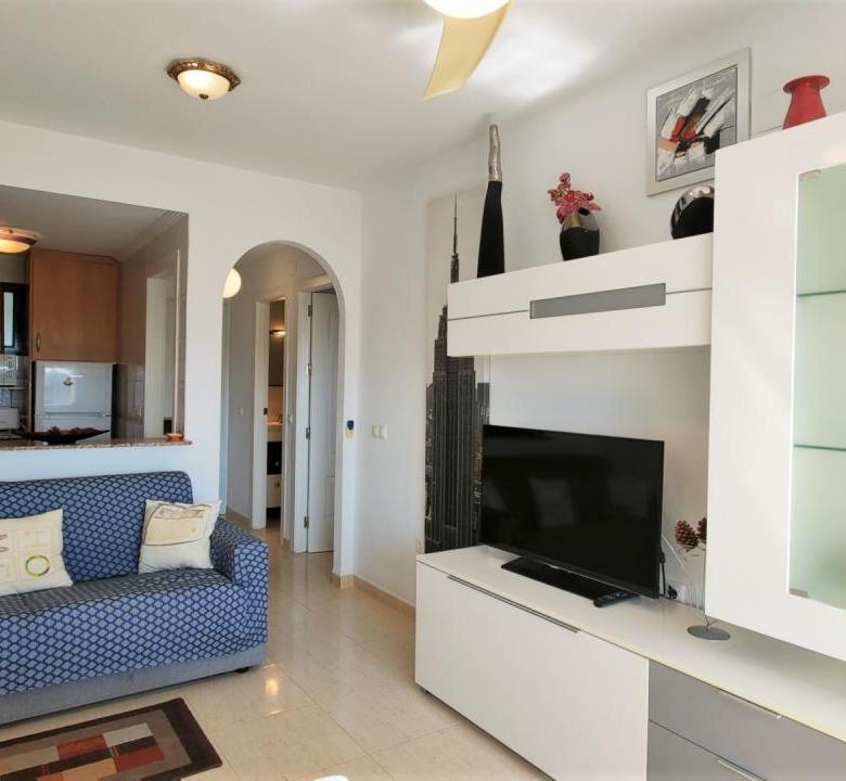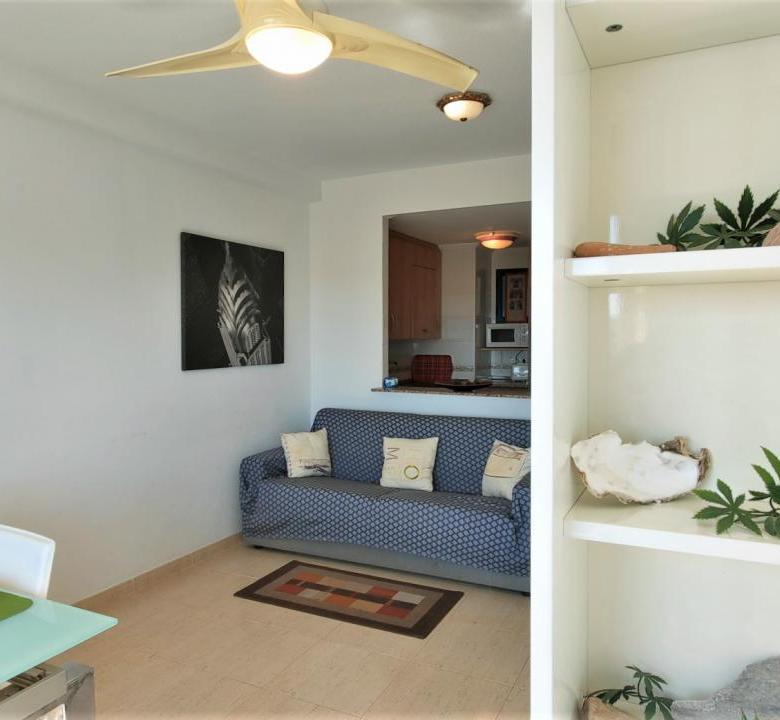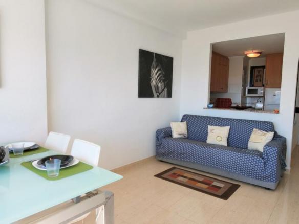El apartamento se compone por : 1 dormitorio, 1 baño, salón , cocina terraza con vistas al mar. La vivienda posee todo lo necesario para su estancia: televisión, conjuntos de cama, toallas, vajilla y cubertería.