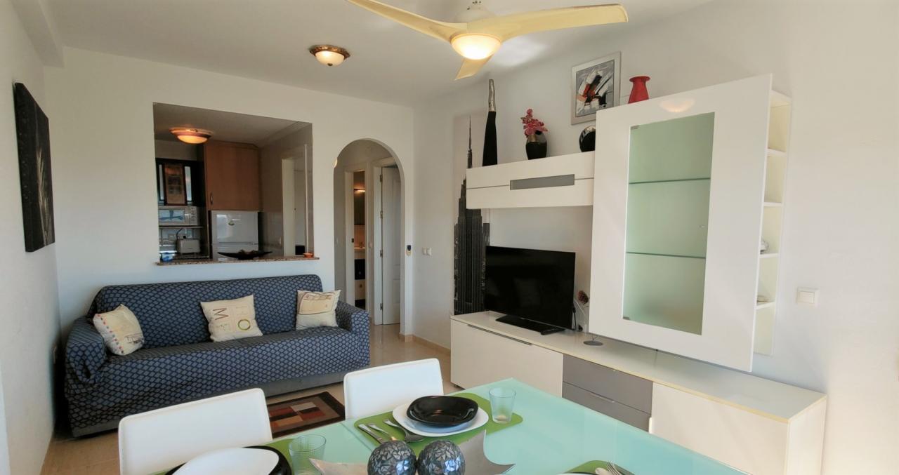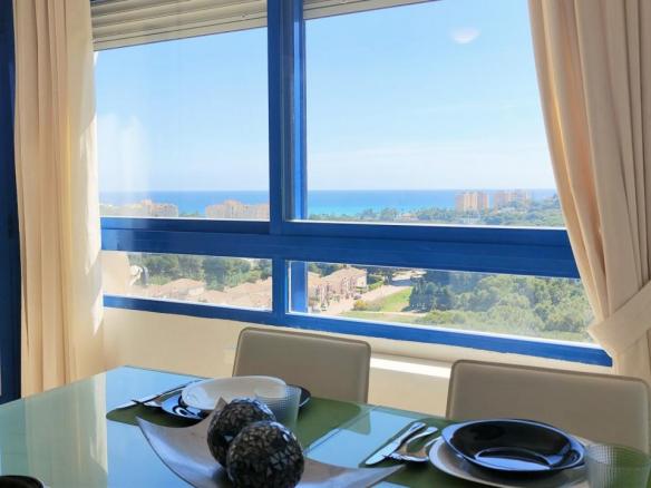 Bonito apartamento con amplia terraza y vistas al mar. La vivienda pertenece al complejo residencial ¨Los Altos de Campoamor¨, el cual posee una amplia piscina, zona BBQ, zona infantil, pistas de tenis y zona de aparcamiento.