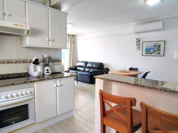 El apartamento dispone de 2 dormitorios, 1 baño, salón, cocina. Totalmente equipado con todo lo necesario para su estancia .Cocina equipada con horno, microondas y lavadora, una terraza amueblada.