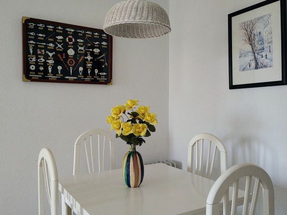 El apartamento dispone de un amplio salón con terraza desde la que se puede disfrutar de una hermosa vista del mar Mediterráneo y a La Manga. El edificio está diseñado y ubicado de tal manera que el movimiento natural de las masas de aire provenientes del mar va cambiando según los días, ventila y enfría absolutamente todas las habitaciones incluso en el día más caluroso…Tendrás la oportunidad de comprobarlo por ti mismo!