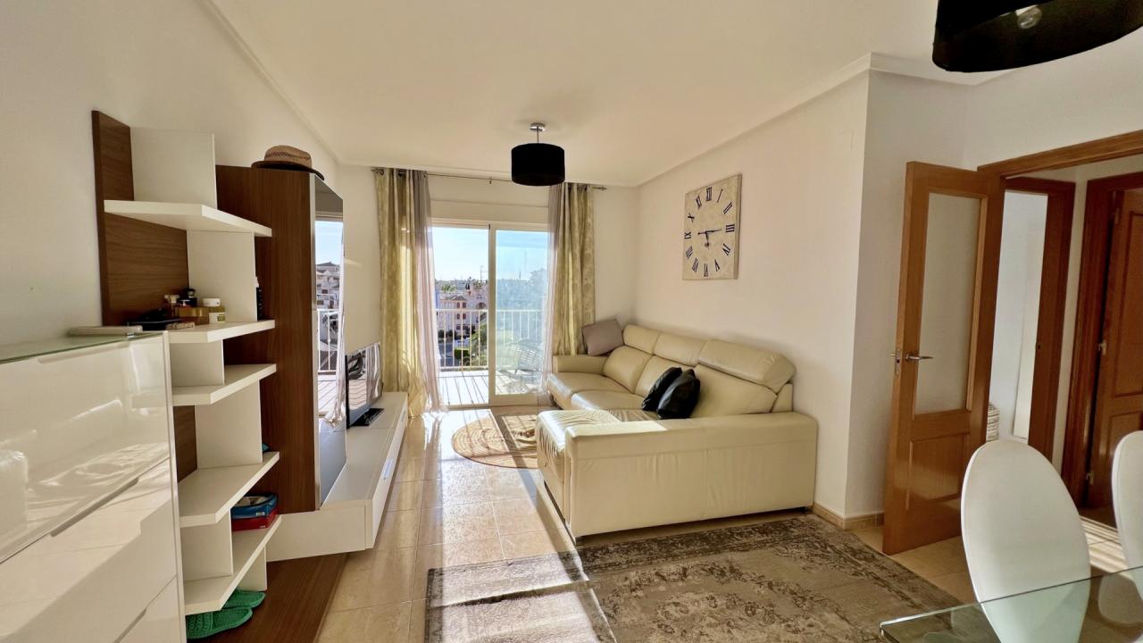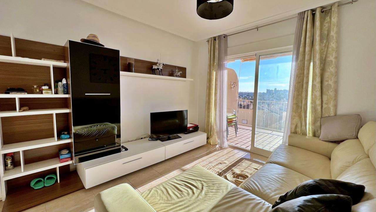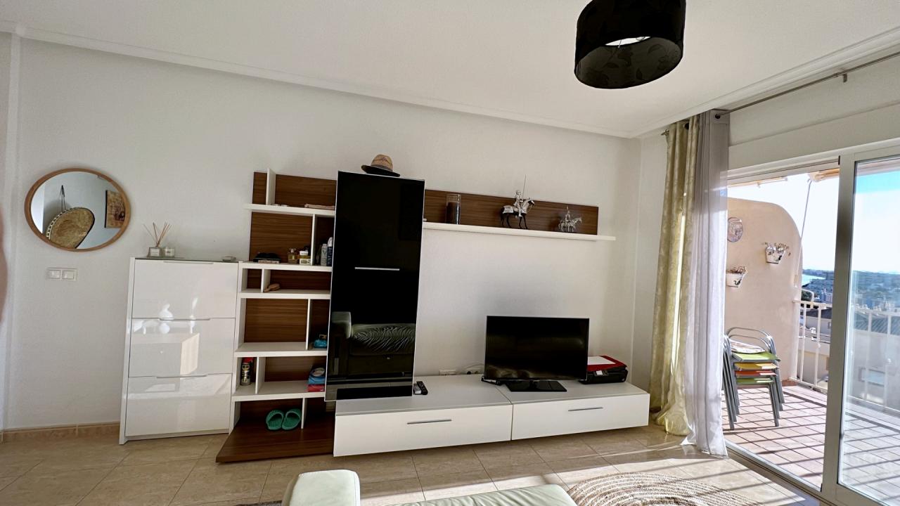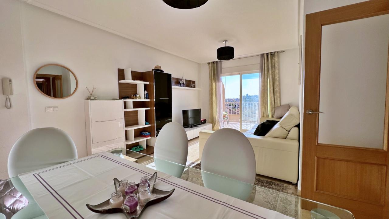 En una de las zonas más cotizadas y verdes de Orihuela Costa — Dehesa de Campoamor, al sur de la soleada provincia de Alicante, se ofrece a la venta un luminoso y cuidado apartamento de tres dormitorios en un complejo residencial cerrado a escasos metros del mar.