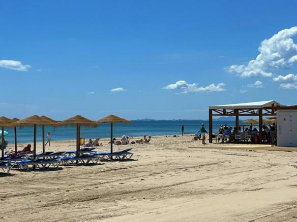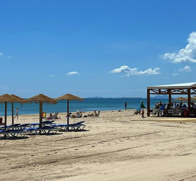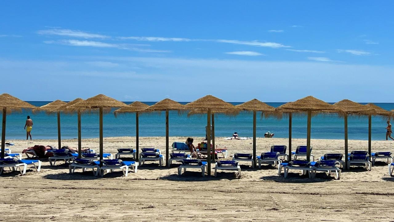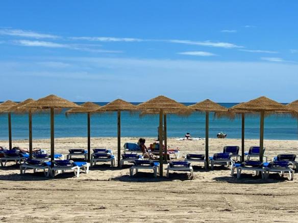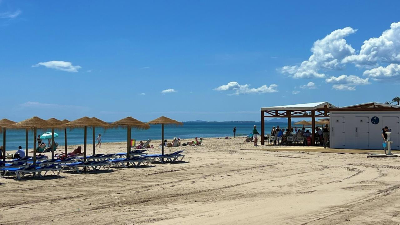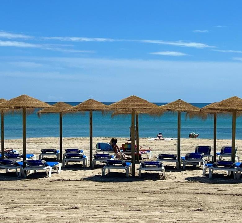 El complejo residencial cuenta con piscina comunitaria, amplias zonas verdes y ajardinadas, aparcamiento dentro del recinto y un ambiente tranquilo y seguro. La cercanía al mar es uno de sus mayores atractivos: solo unos pasos separan la vivienda de las aguas del Mediterráneo y de las playas de Aguamarina, conocidas por su limpieza y belleza natural.