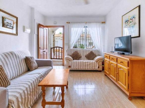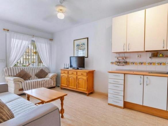Presentamos este apartamento tipo bungaló ubicado en Dehesa de Campoamor (Orihuela Costa), dentro de un residencial en primera línea del mar que ofrece un entorno privilegiado y acceso directo a la playa de Aguamarina. La vivienda, con una superficie construida de 53 m², está lista para entrar a vivir y destaca por su estado de conservación y su distribución funcional. Dispone de un dormitorio doble, un baño completo y una terraza privada de 3 m2 y patio interior de aproximadamente 8 m², ideal para disfrutar del clima mediterráneo durante todo el año.