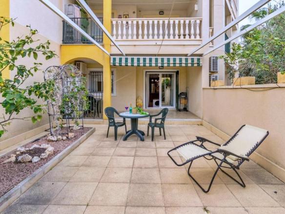 Apartamento de estilo contemporáneo en planta baja, ubicado en una de las zonas más solicitadas de Orihuela Costa — Dehesa de Campoamor, a solo 800 metros de la playa y del puerto deportivo.