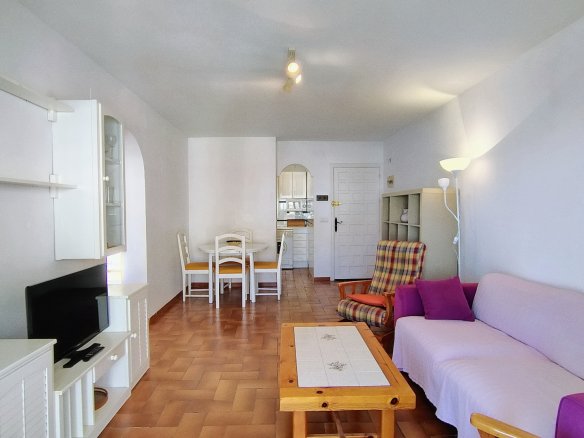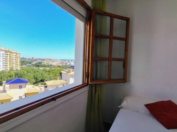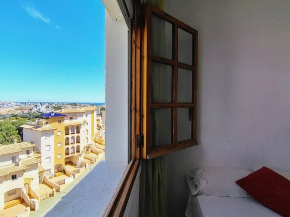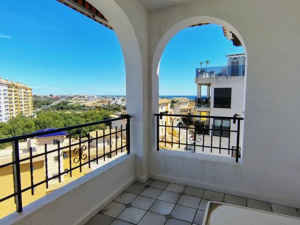 Este encantador ático en Altos de Campoamor es una excelente oportunidad para quienes buscan una vivienda luminosa, cómoda y con vistas al mar. Con una superficie de 73 m², ofrece un ambiente acogedor y funcional en cada rincón. Dispone de dos habitaciones amplias y bien iluminadas, ambas con armarios empotrados que maximizan el espacio. Una de ellas cuenta con acceso a una terraza privada de 3 m², ideal para disfrutar de un momento de tranquilidad al aire libre. El baño es completo, con ventilación natural y una cómoda bañera, perfecto para el uso diario.