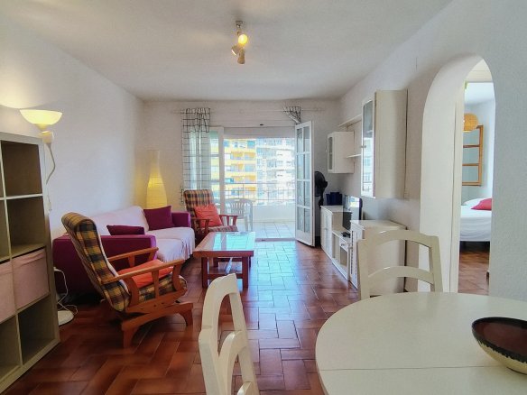 El salón-comedor es amplio y confortable, y da paso a una terraza frontal de 8 m² con vistas al mar, donde podrás cenar con amigos o relajarte en familia mientras contemplas el atardecer. La cocina es independiente y está equipada con todos los electrodomésticos necesarios, con suficiente espacio de almacenamiento, perfecta para los que disfrutan cocinando en casa.