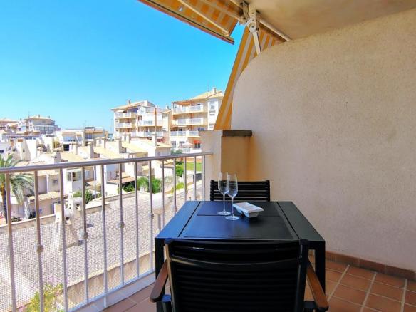 Descubre este fantástico apartamento en la exclusiva urbanización Las Terrazas de Aguamarina, en Campoamor, a solo 250 metros de las espectaculares playas de Aguamarina y La Glea.