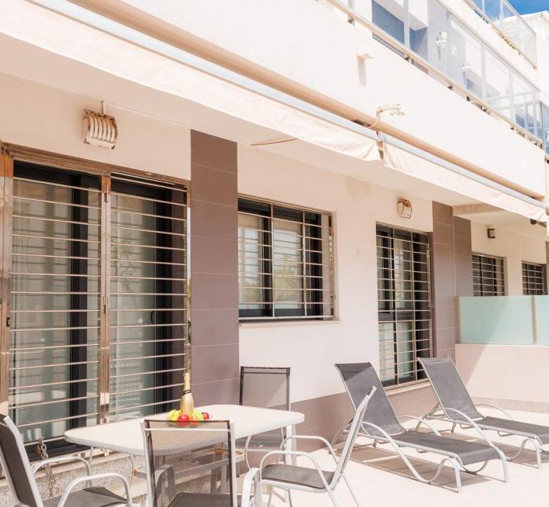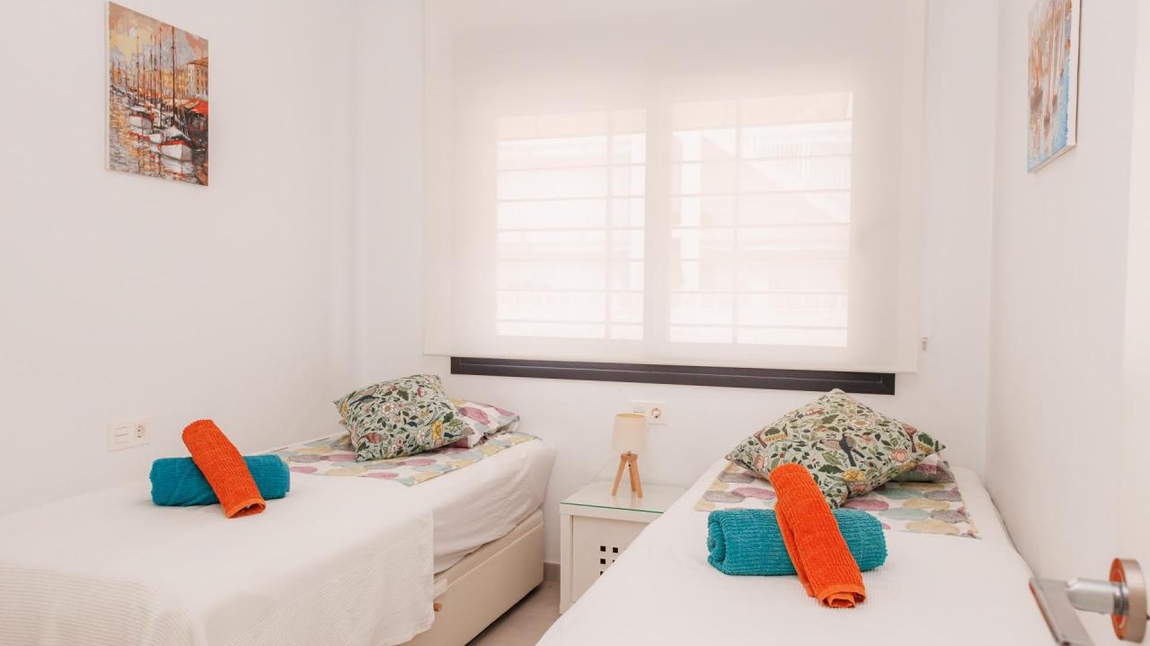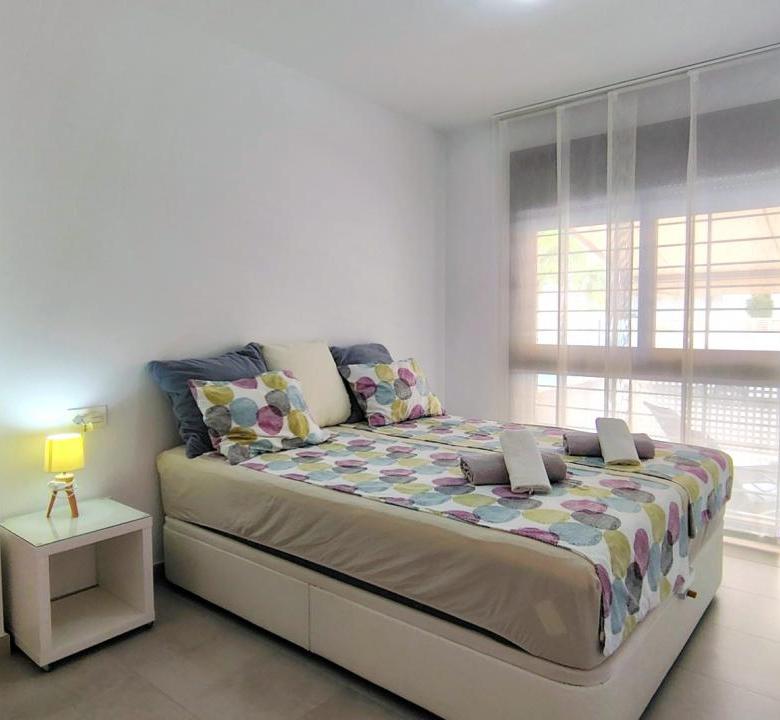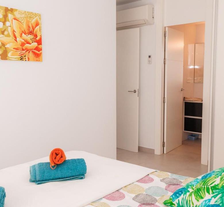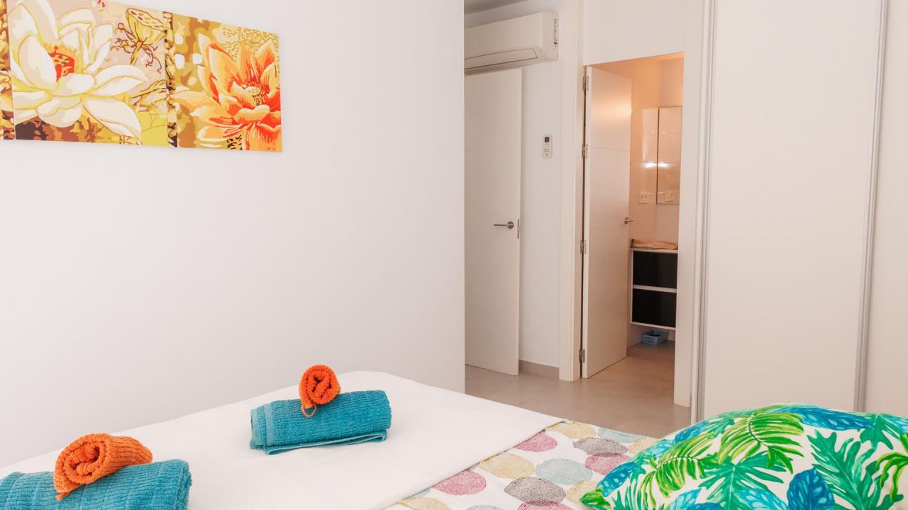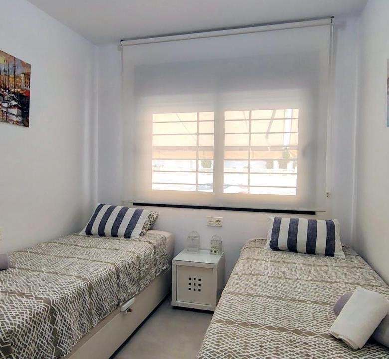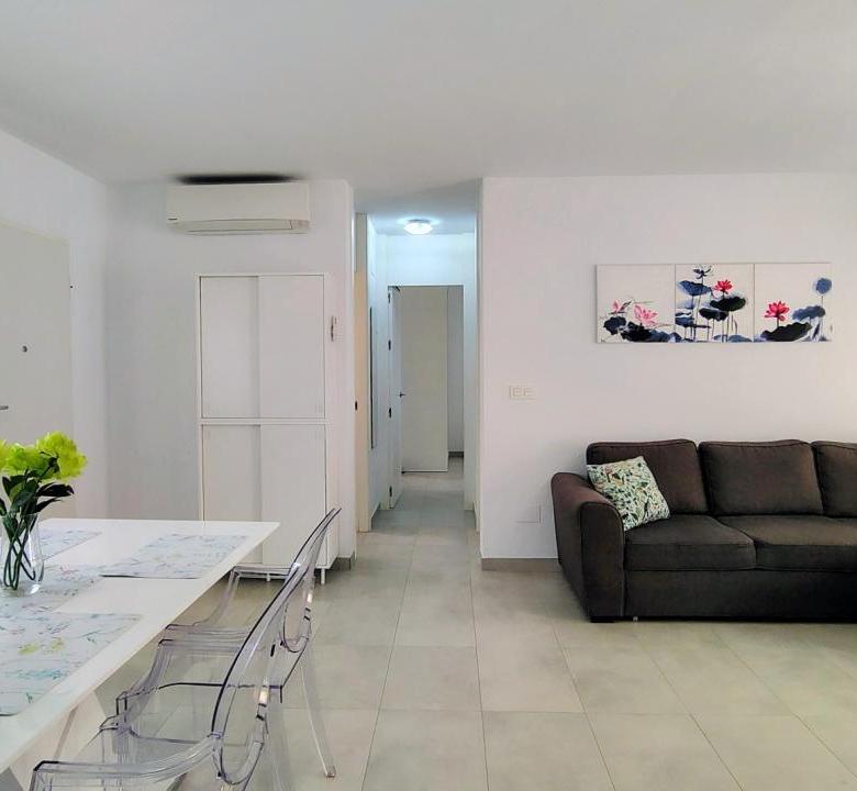 Además, el apartamento está equipado con todo lo necesario para su estancia. Dispone de 3 aires acondicionados, toldos eléctricos, WIFI, etc…