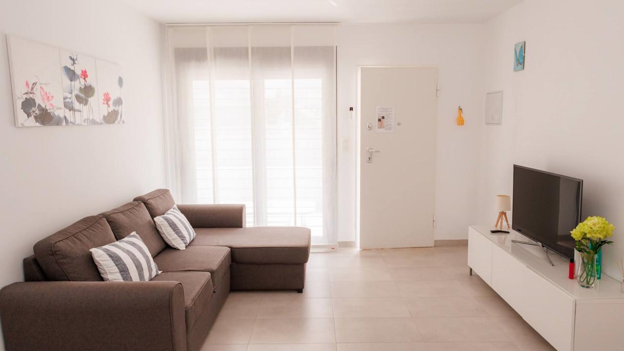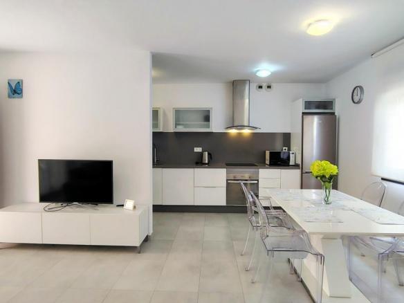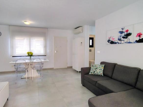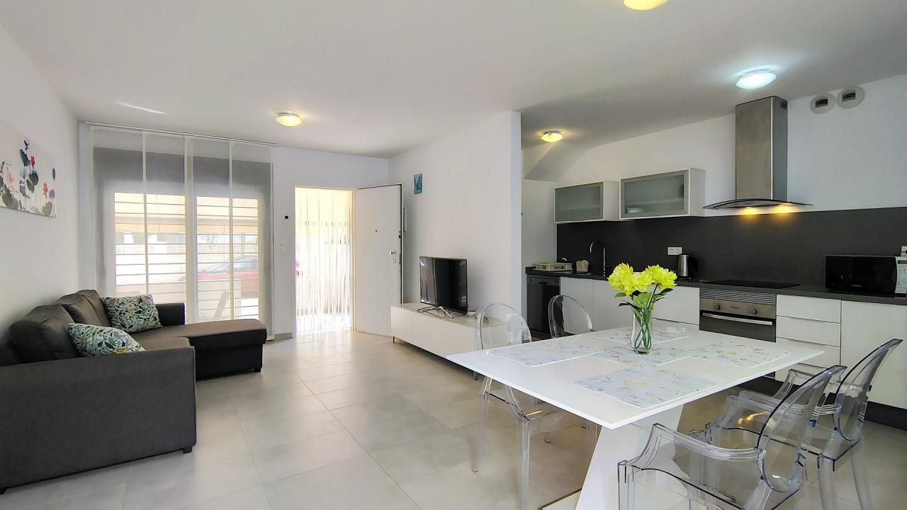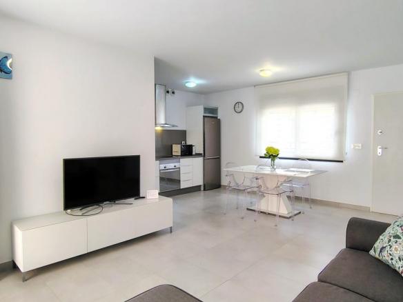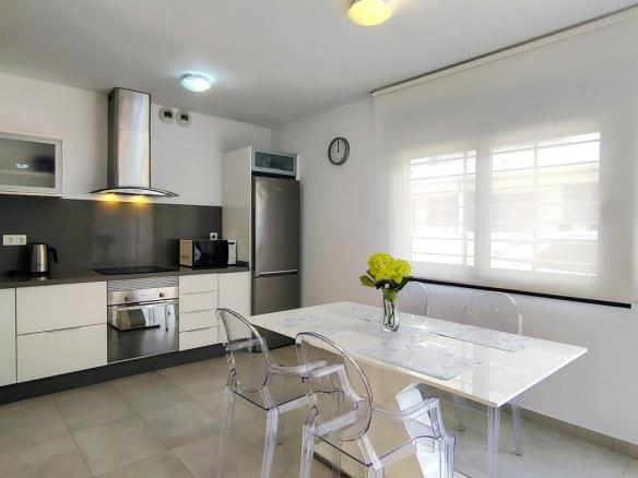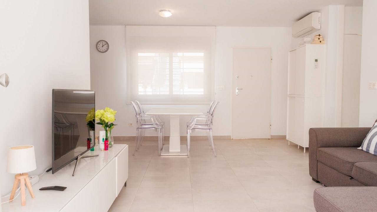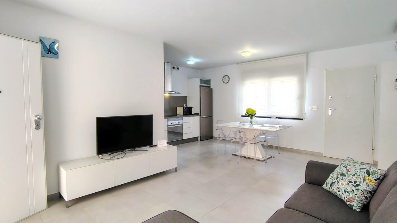 Además, el apartamento está equipado con todo lo necesario para su estancia. Dispone de 3 aires acondicionados, toldos eléctricos, WIFI, etc…