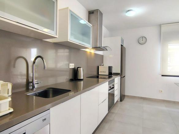 Este bonito apartamento consta de 2 amplios dormitorios, 2 baños, salón, cocina, amplia terraza con tumbonas sillas y mesa.