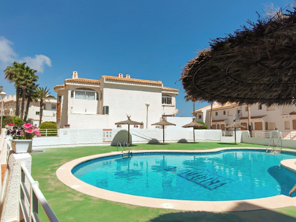 Descubre este encantador bungalow en la prestigiosa urbanización Aguamarina, ubicada en Dehesa de Campoamor, una de las zonas más exclusivas de la Costa Blanca. Este complejo residencial cuenta con una gran piscina comunitaria, ideal para disfrutar del clima mediterráneo, y se encuentra a tan solo 150 metros de la playa de arena La Glea, una de las más apreciadas de la zona. Además, está rodeado de un hermoso paseo marítimo con bares, restaurantes, tiendas y parques infantiles, proporcionando un entorno vibrante y lleno de comodidades.