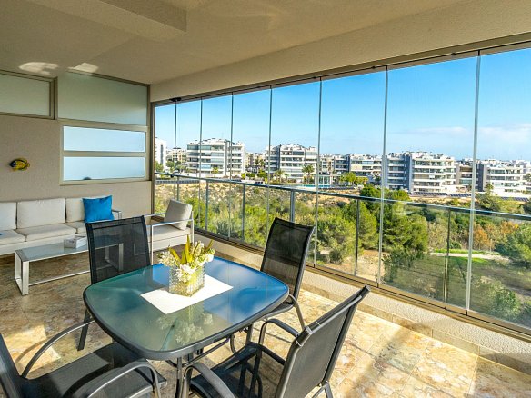 - Vistas panorámicas: disfruta de la belleza del parque verde y del infinito mar Mediterráneo desde tu amplia terraza acristalada.