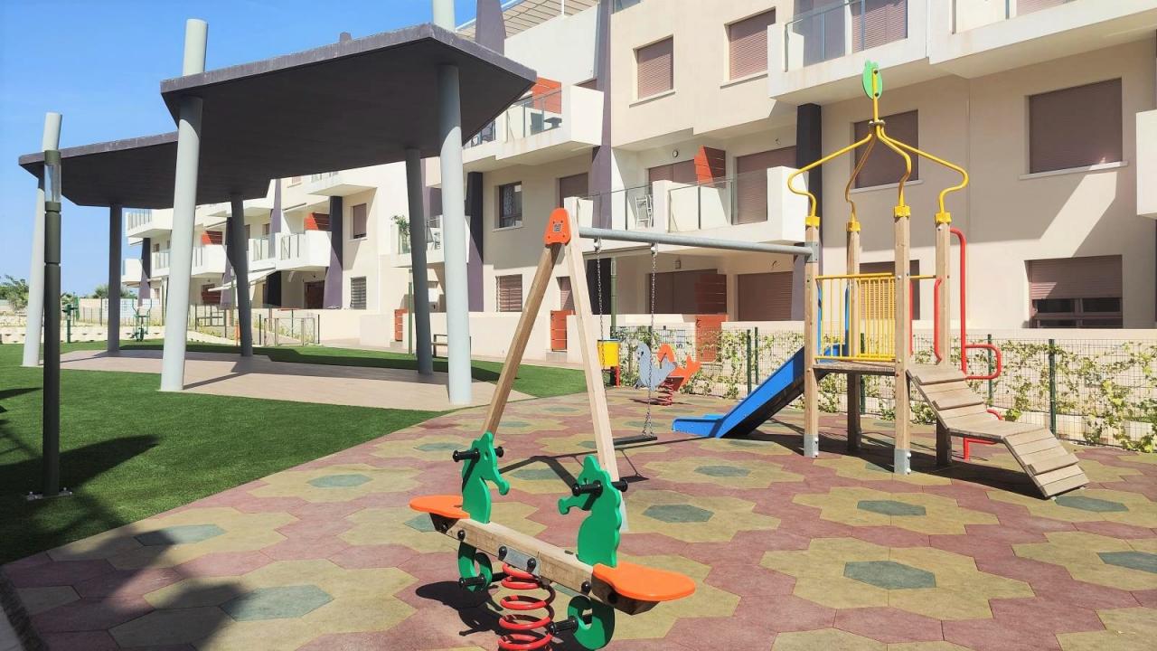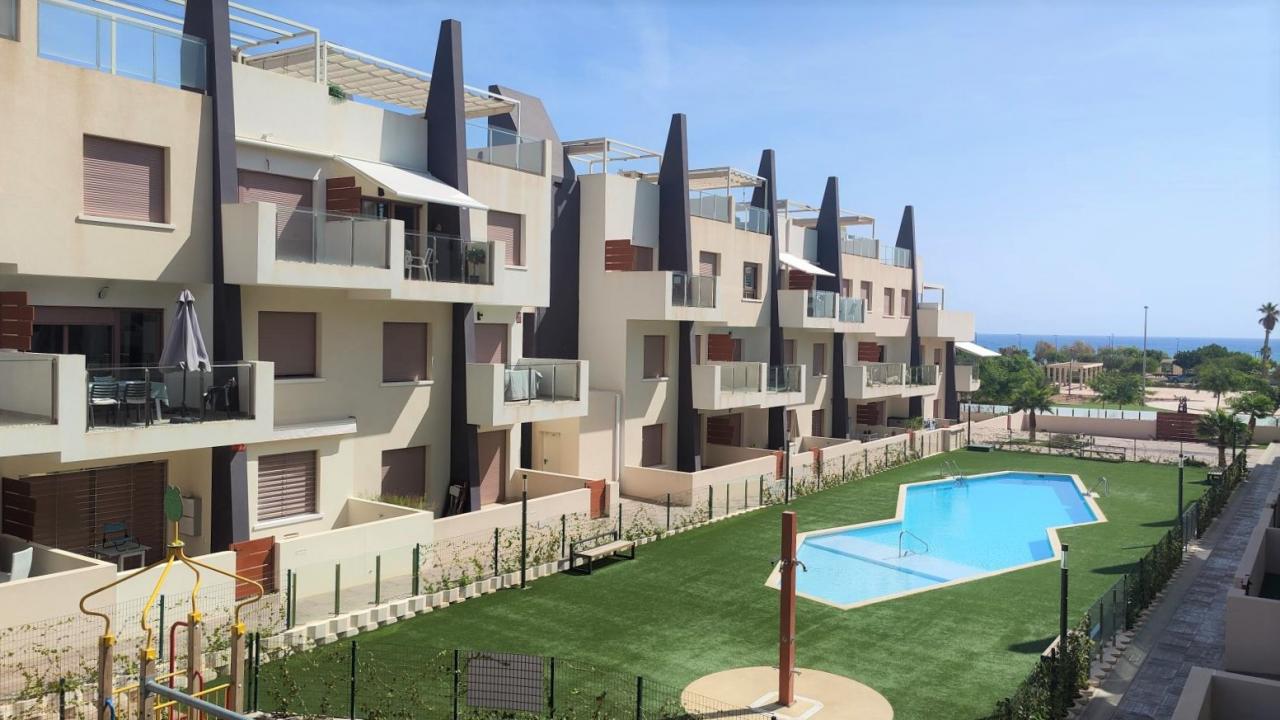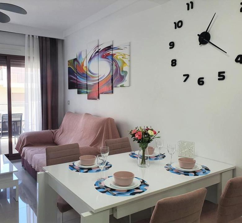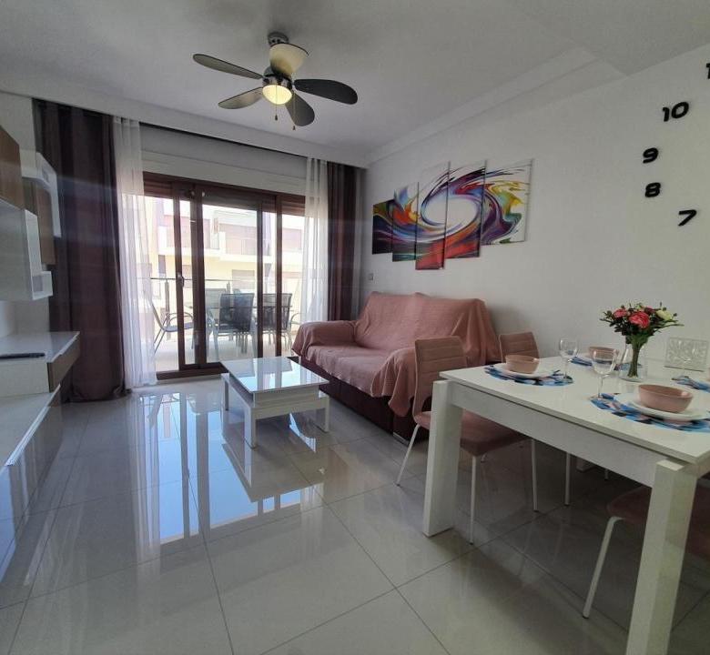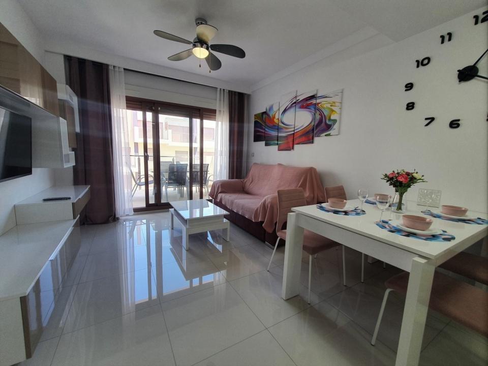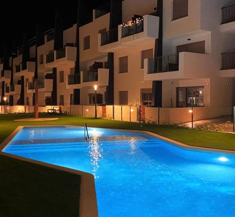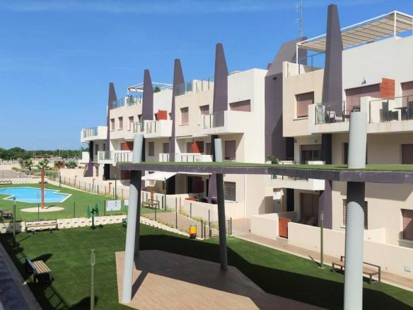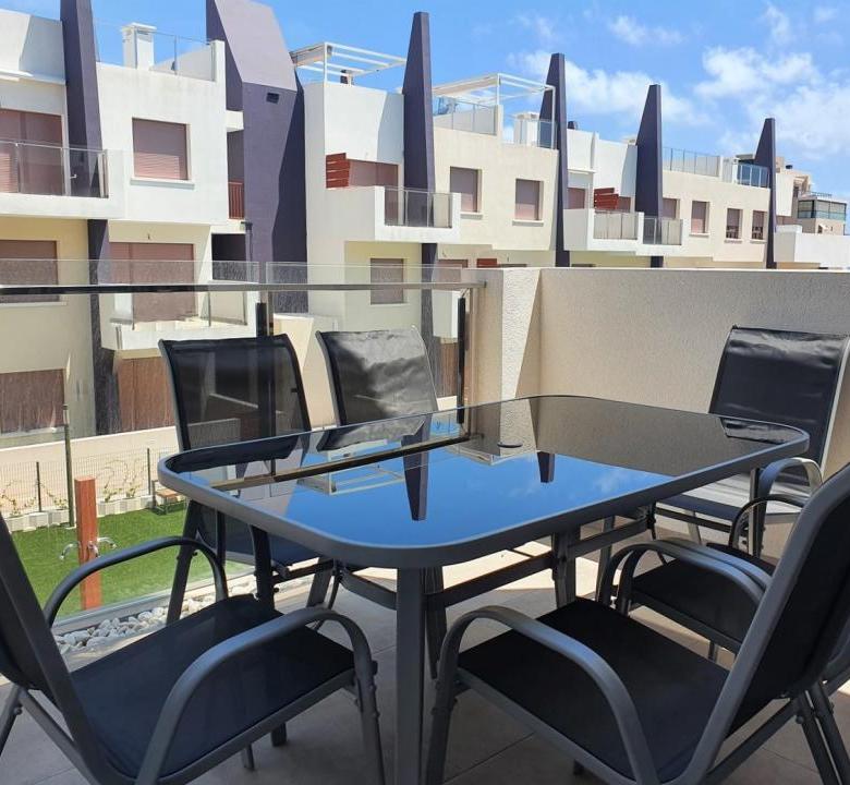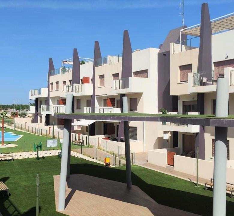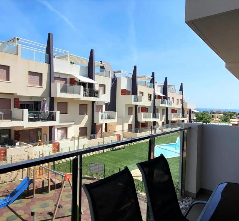 Excelentes apartamentos con una gran terraza se encuentran en el complejo residencial Bianca Beach, que se encuentra en el pequeño y acogedor pueblo de Torre de La Horadada, en el sur de la provincia de Alicante, en la costa mediterránea de España.