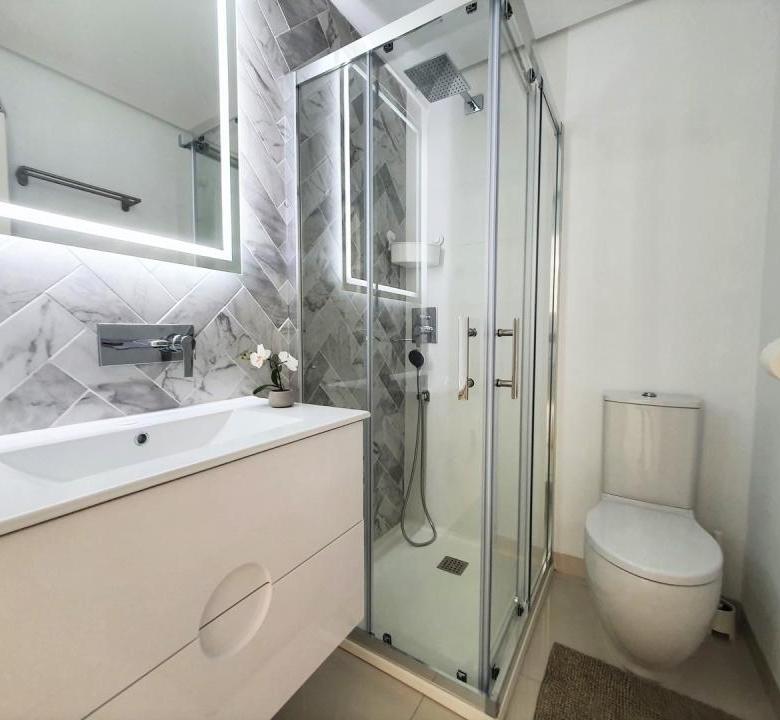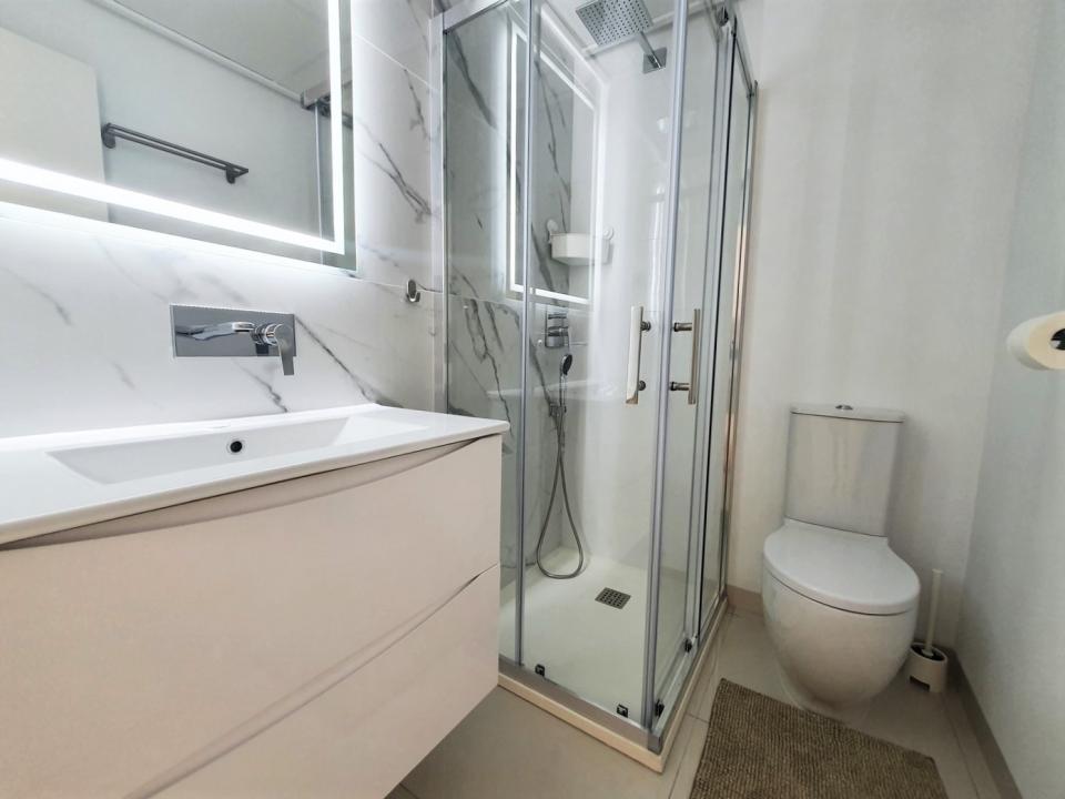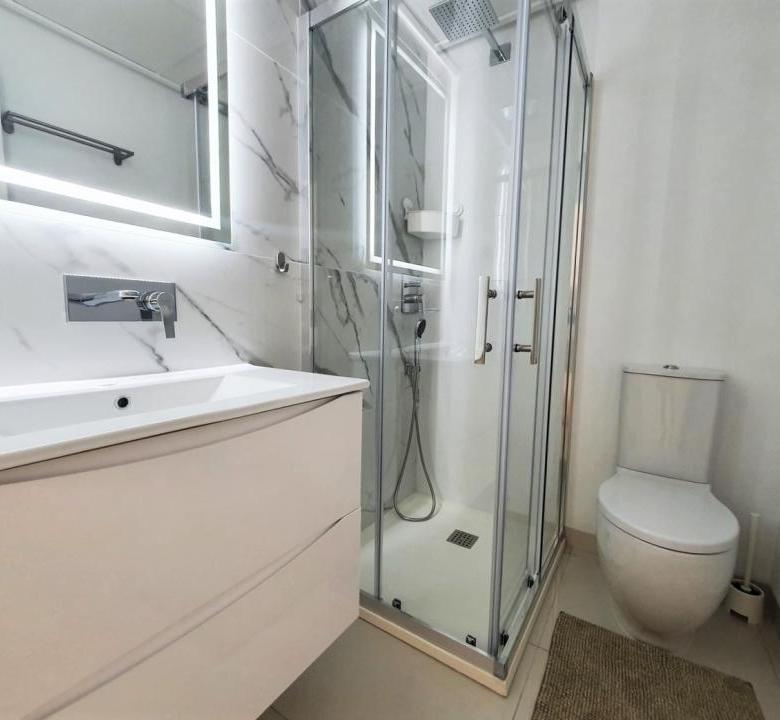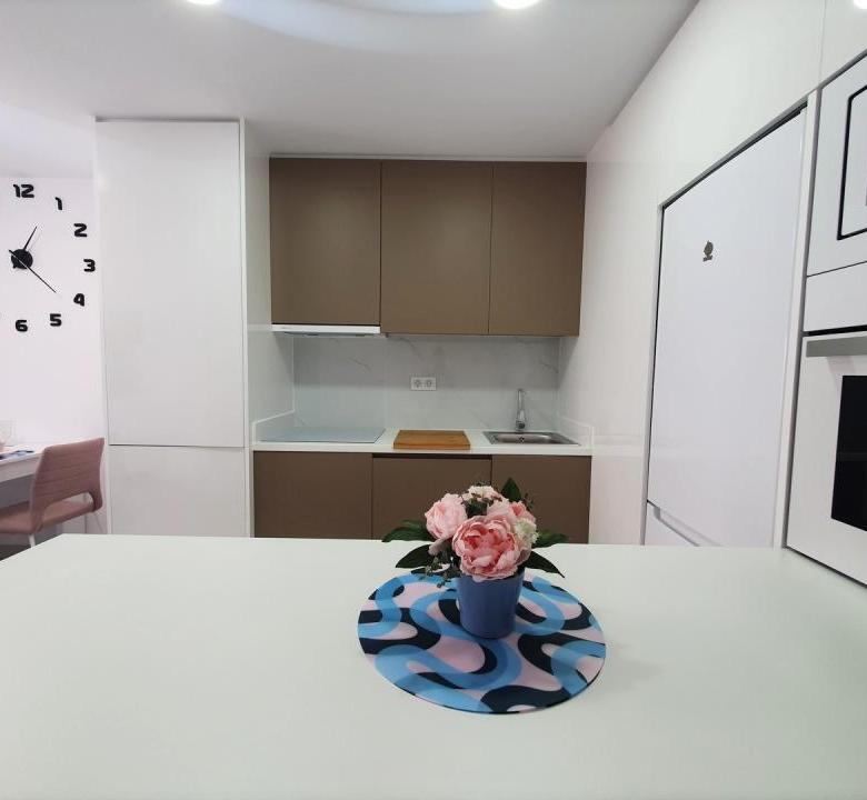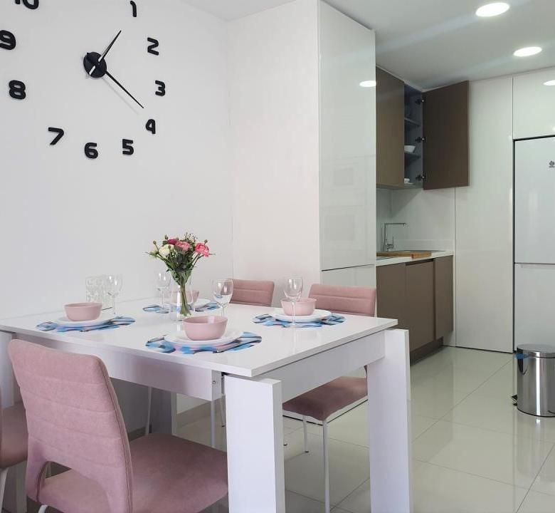El apartamento consta de 2 dormitorios, 2 baños, salón, cocina y una bonita terraza con comedor equipado con vistas a la piscina y al mar, y una terraza con tumbonas con vistas a la ciudad y al mar. Los apartamentos tienen un sistema de aire acondicionado, muebles y artículos de decoración cuidadosamente seleccionados, una cocina funcional equipada con horno, microondas, lavavajillas y lavadora.