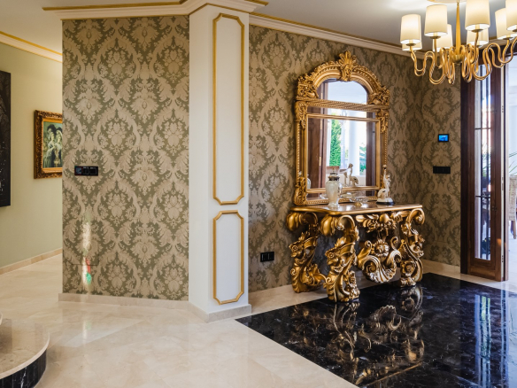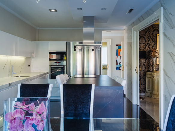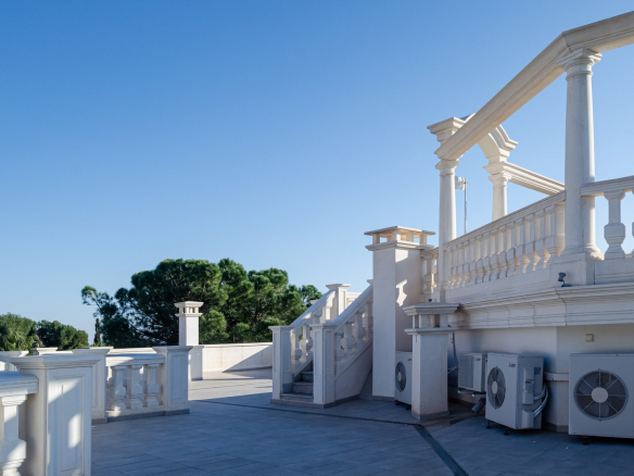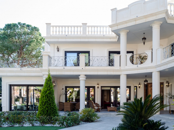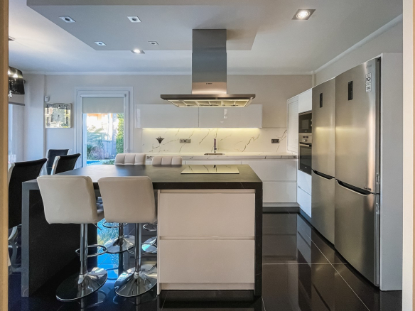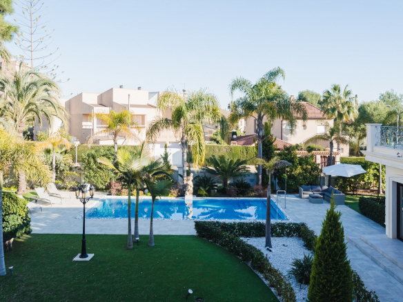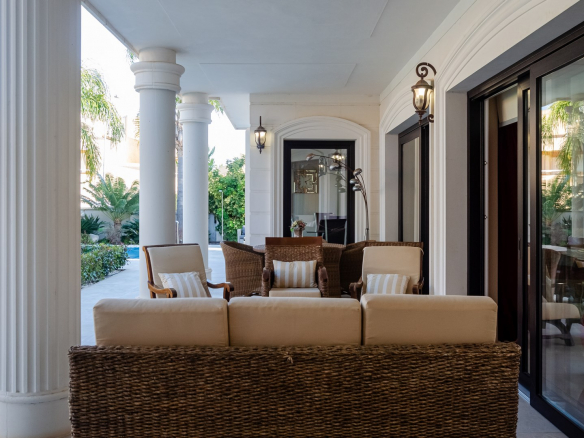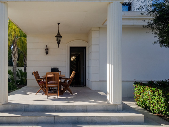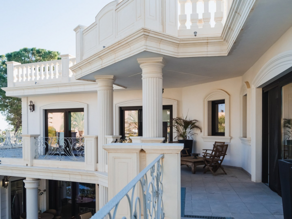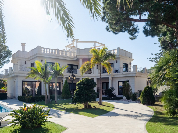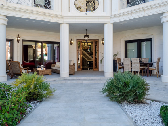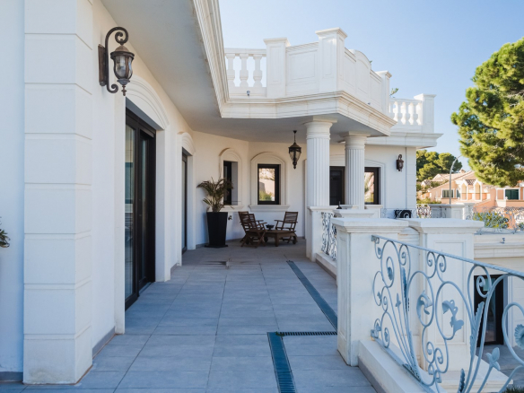 Impresionante villa moderna de estilo clásico, situada a 500 metros de la playa de arena, en el corazón de la famosa urbanización Dehesa de Campoamor, un precioso pueblo al sur de la provincia de Alicante.