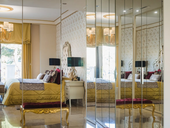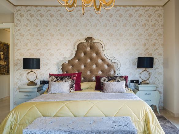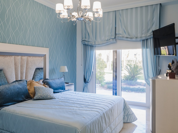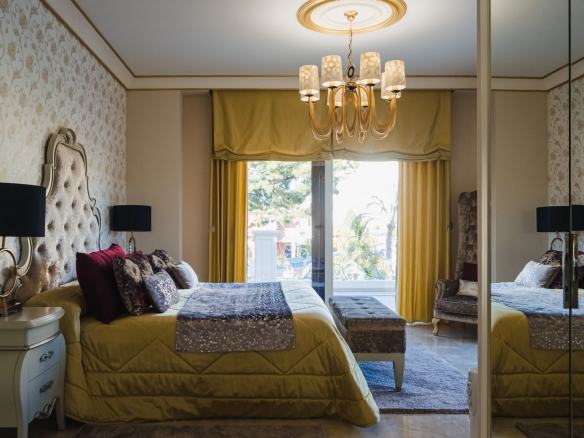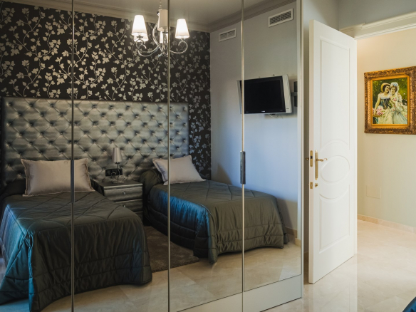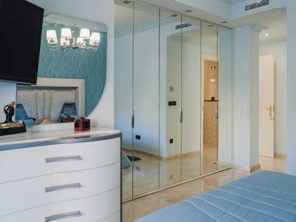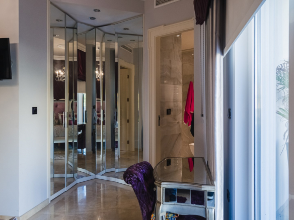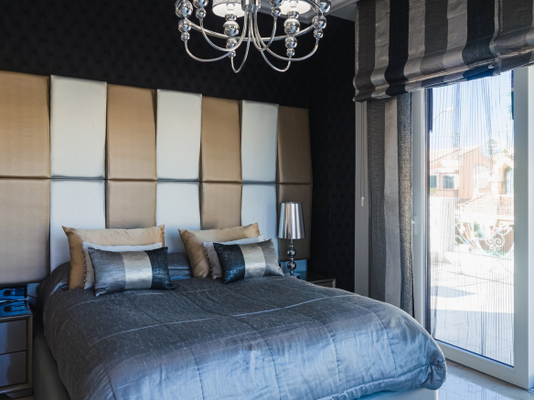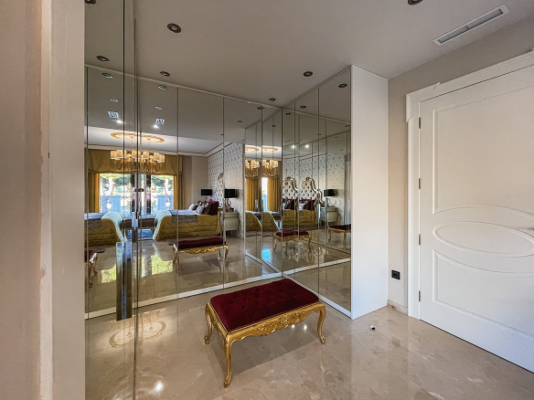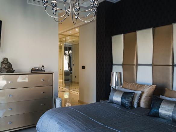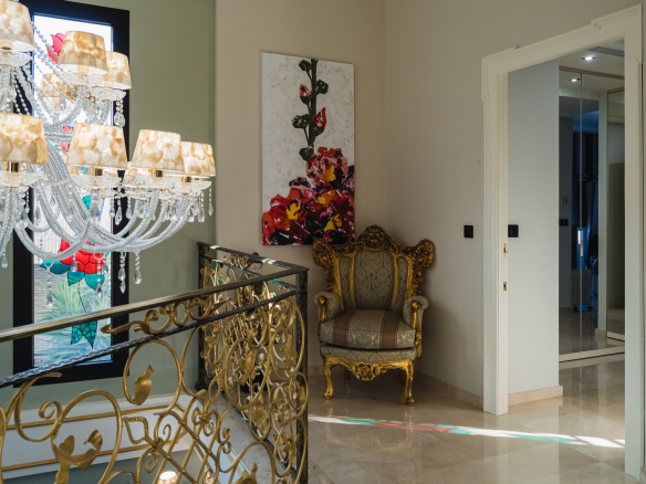 A la planta primera de la casa se accede por una hermosa escalera o ascensor, donde se encuentran los dormitorios principales. En el parte izquierda se encuentra el dormitorio principal de la casa con un gran armario y un impresionante baño, aquí está otro dormitorio más, también con armario y un baño, y en el parte izquierda hay otro gran dormitorio y por supuesto tiene su propio guardarropa y baño. Desde cada una de las habitaciones se accede a una hermosa terraza donde podrá relajarse disfrutando de una hermosa vista al jardín, la piscina y los alrededores hacia el mar.