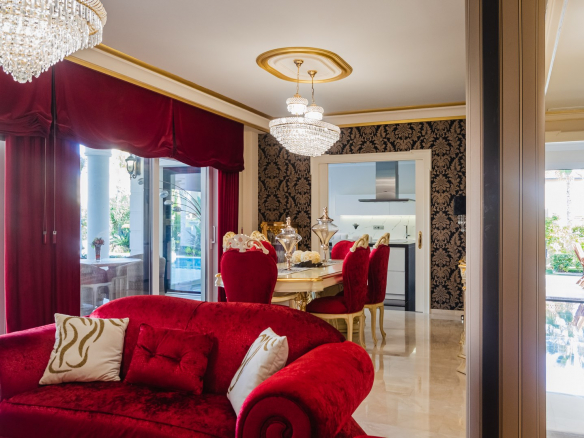 En la construcción de la casa se utilizaron materiales de alta calidad, así como ventanas y puertas, muebles, etc. y los colores vibrantes se combinan cuidadosamente para crear un hogar cómodo y único. La villa se vende completamente amueblada y equipada.
