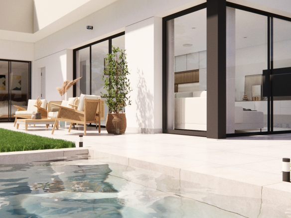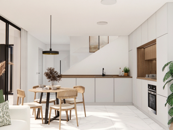 Una característica que destaca en este adosado es su domótica avanzada, que incluye persianas motorizadas para mayor comodidad y eficiencia energética. Además, los cristales »Guardian Sun» garantizan que la vivienda se mantenga fresca en los días calurosos mientras permite que la luz natural inunde tus espacios interiores, creando un ambiente acogedor y luminoso.