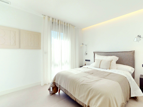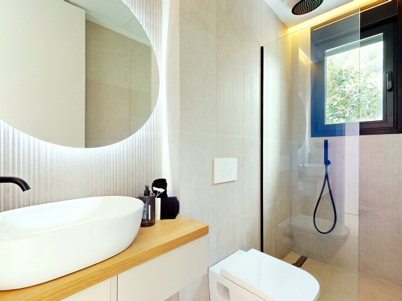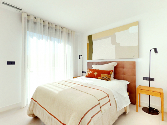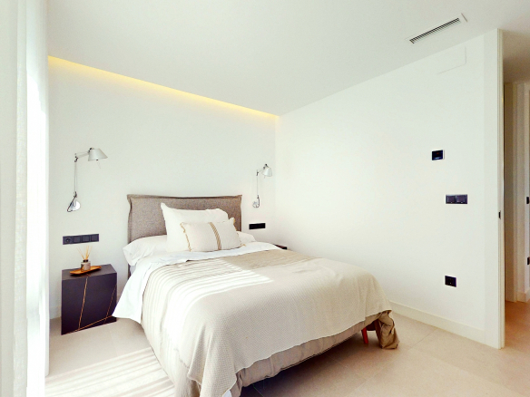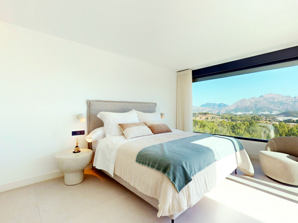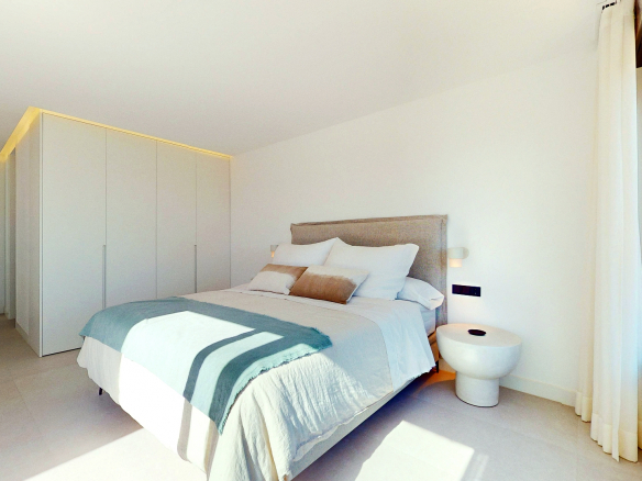 Los dormitorios, distribuidos en varias plantas, ofrecen un refugio privado y tranquilo para relajarse y descansar. Uno de los dormitorios cuenta con su propio vestidor, mientras que todos tienen acceso a varias terrazas donde se puede disfrutar de impresionantes vistas panorámicas del entorno natural circundante.