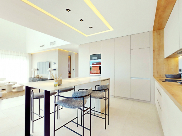 Al ingresar a la villa, te recibirán amplios espacios llenos de luz natural y una distribución inteligente que maximiza cada rincón de la vivienda. El amplio salón-comedor, conectado a una cocina moderna de aproximadamente 40 m2, crea un ambiente acogedor y sofisticado ideal para disfrutar de momentos inolvidables en compañía de familiares y amigos.